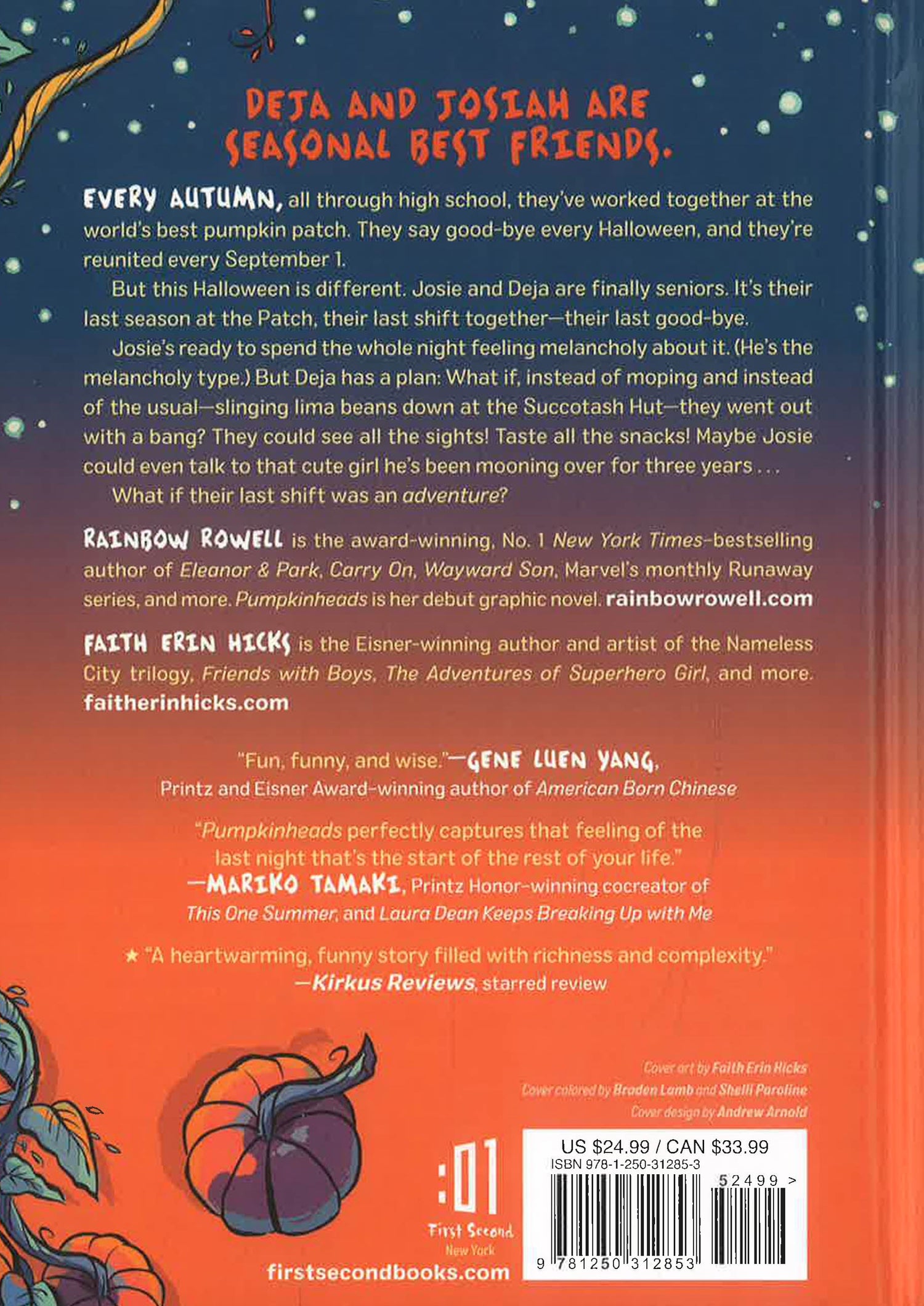 In Pumpkinheads, beloved #1 New York Times bestselling author Rainbow Rowell and Eisner Award-winning artist Faith Erin Hicks have teamed up to create this tender and hilarious story about two irresistible teens discovering what it means to leave behind a place--and a person--with no regrets.