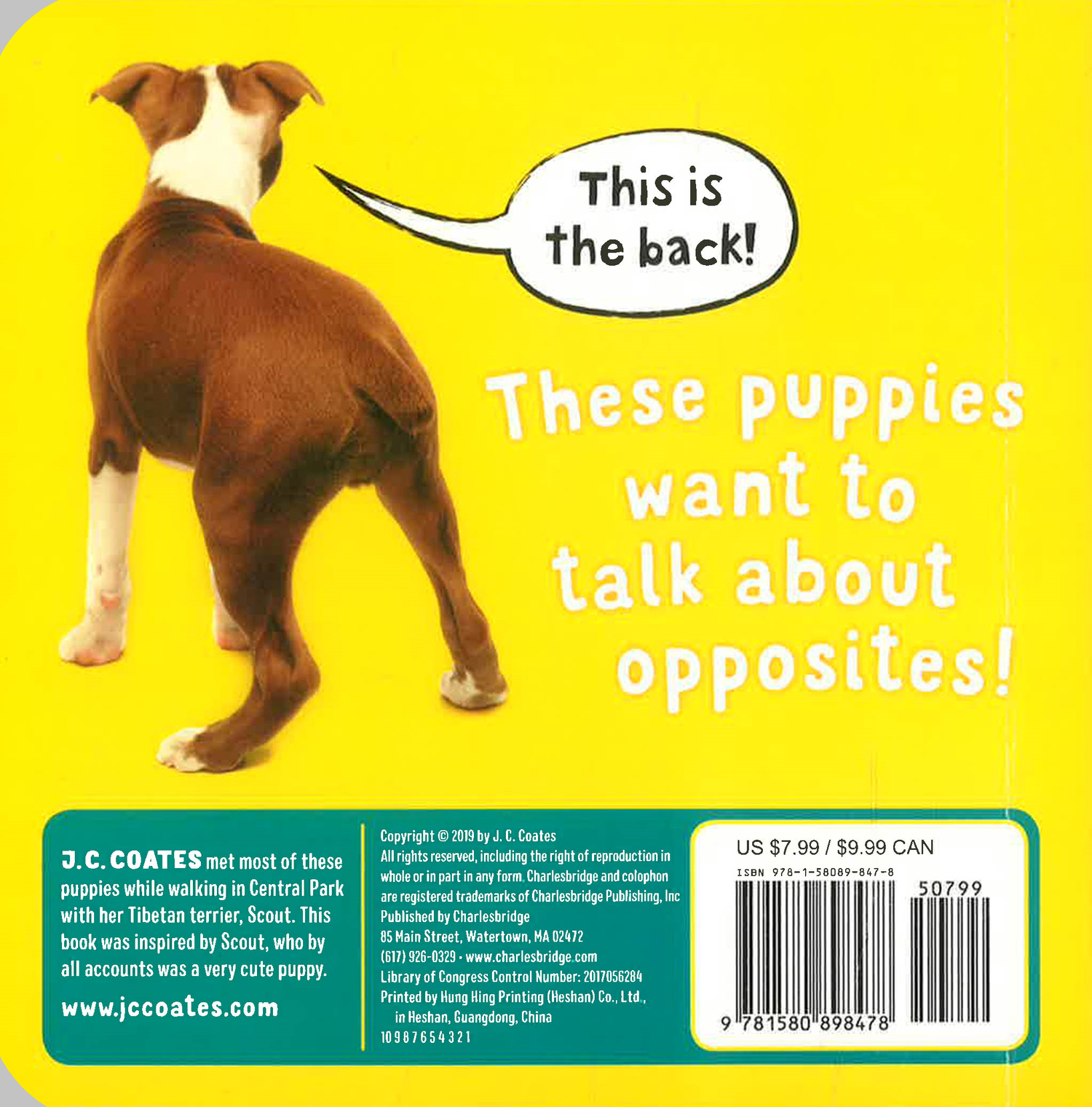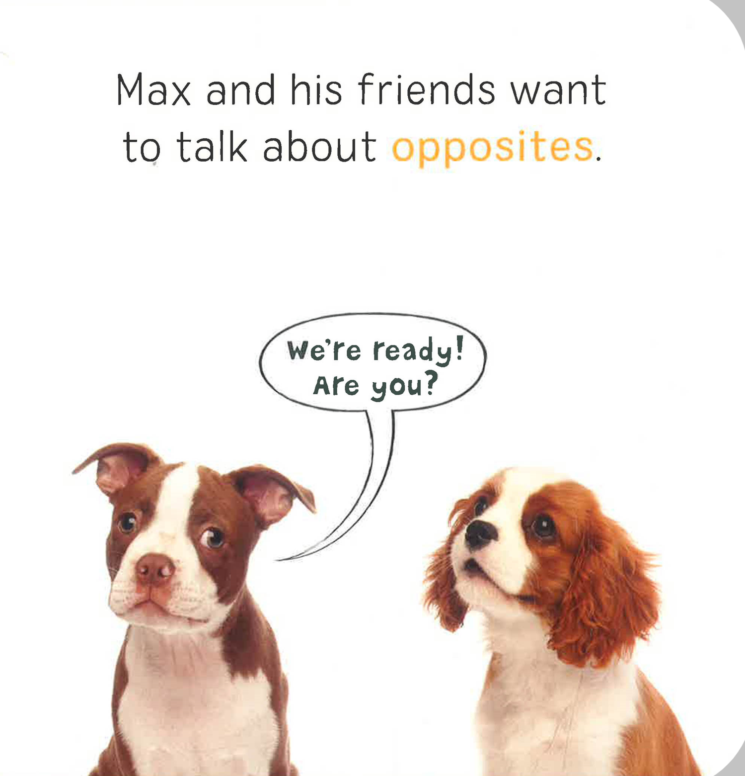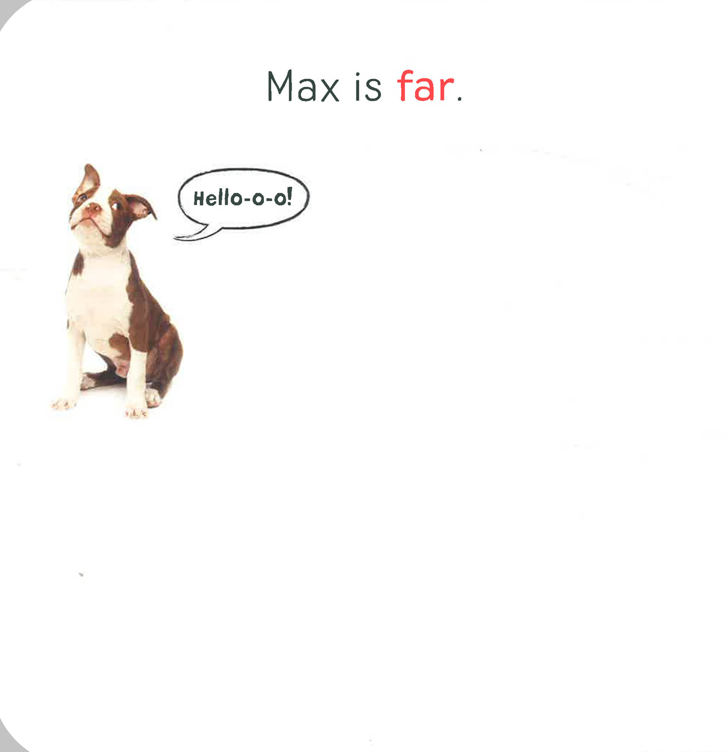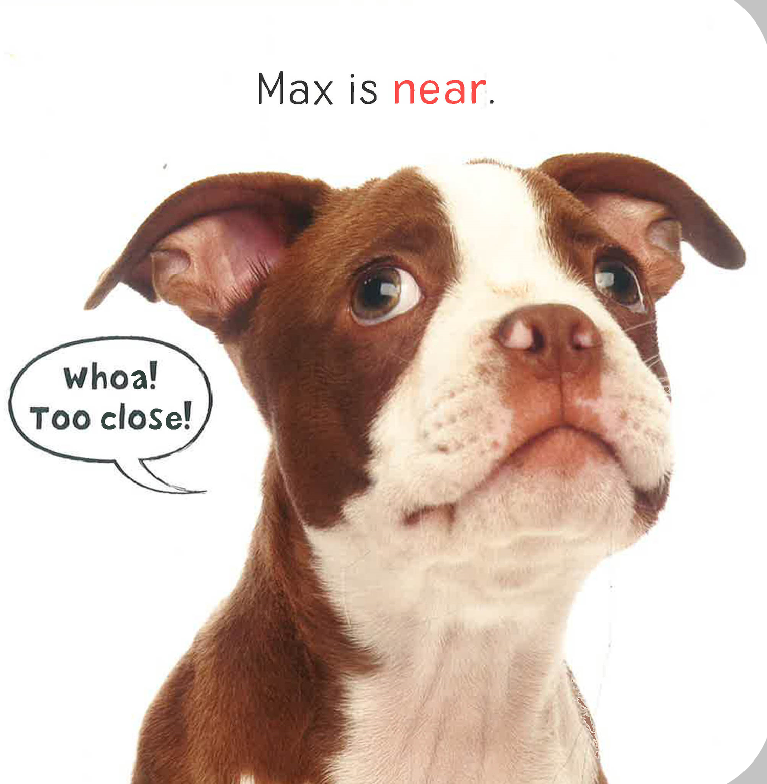 Young dog lovers get to know cuddly puppies by name in this cutely photographed concept book about opposites. Max the Boston terrier and his friends show the difference between near and far, awake and asleep, dry and wet, and more. Funny puppy commentary adds to the canine chaos.