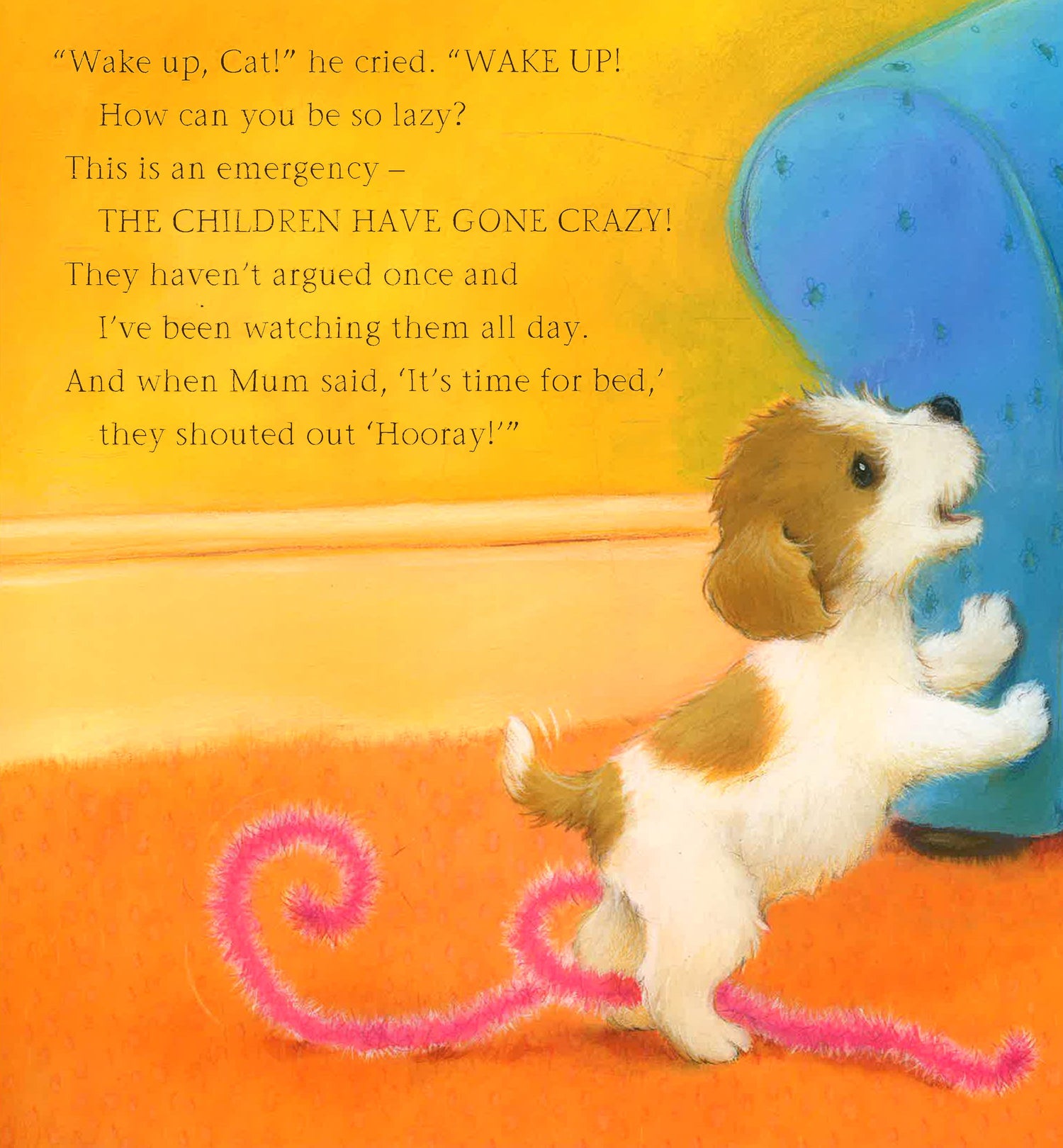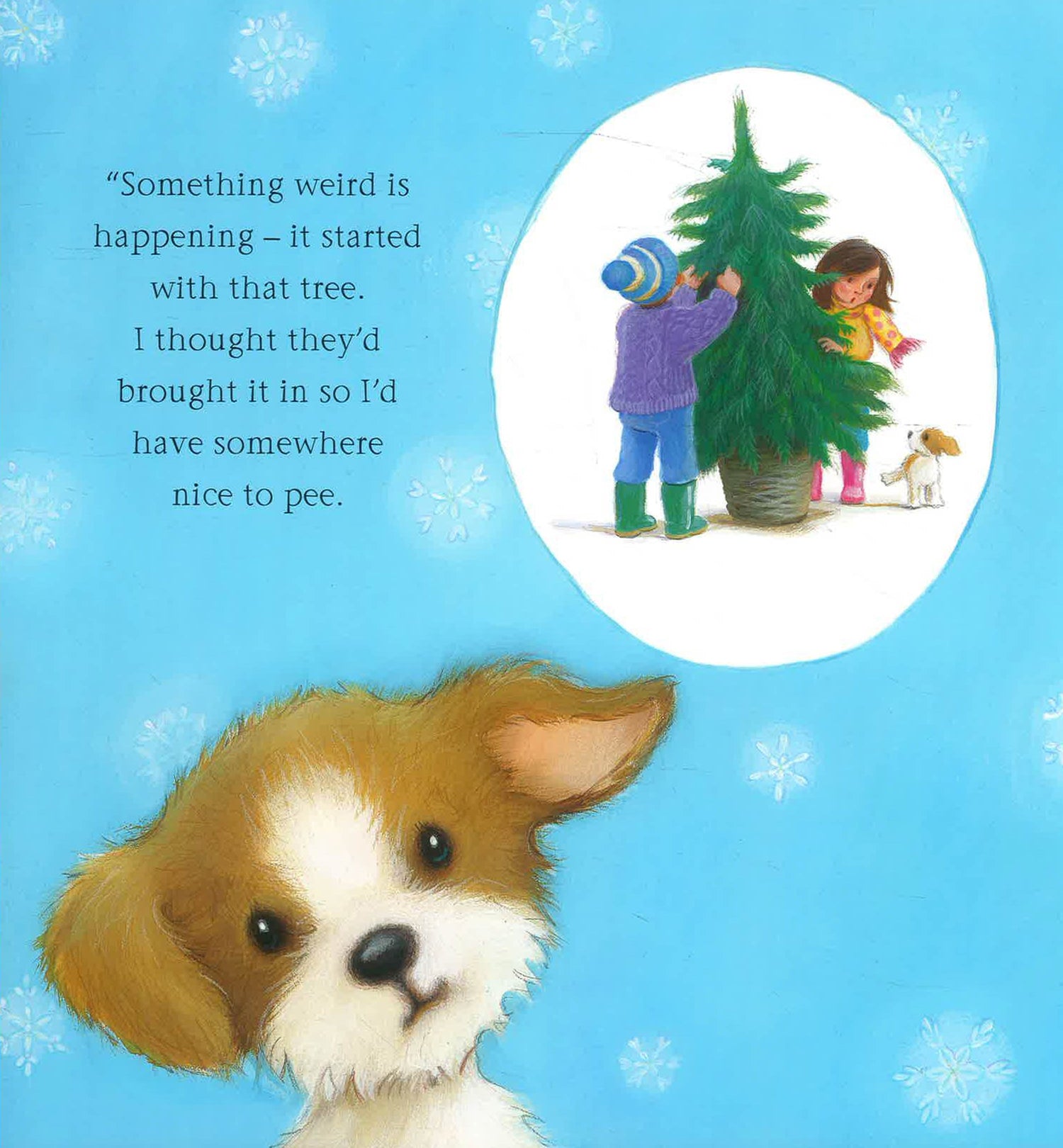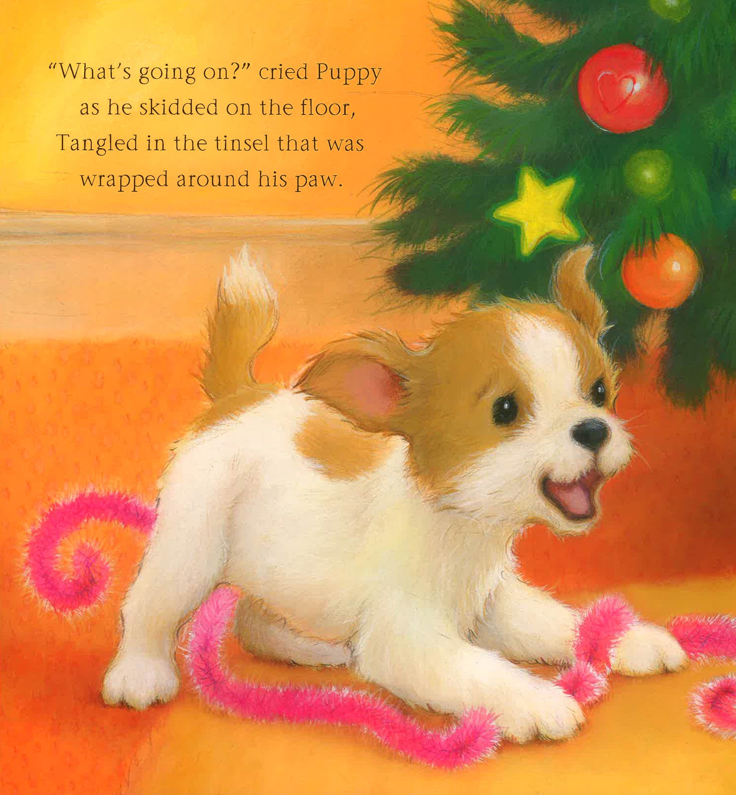 "Something weird is happening," cries Puppy. "Mum's going bonkers in the kitchen, and there are socks on the wall and a huge tree INSIDE the house!" "Relax," says Cat. "It's Christmas Eve - it's like this every year!"