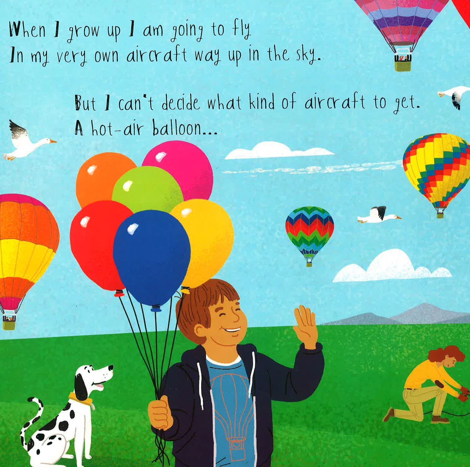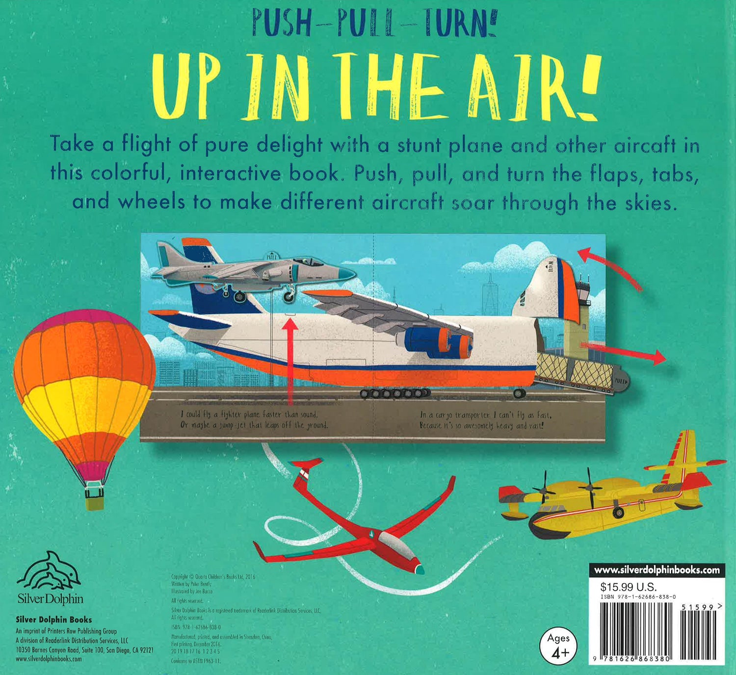 Up, up, and away! Get ready for takeoff! Up in the Air takes kids up in the air as they are introduced to a variety of flying vehicles. Each page features a different interactive element such as spinners, flaps, and tabs. While reading the rhyming story, kids can use the interactive elements to bring the story to life. Whether it's a jet, helicopter, or hot-air balloon, Up in the Air is the perfect introduction to flying vehicles for youngsters.