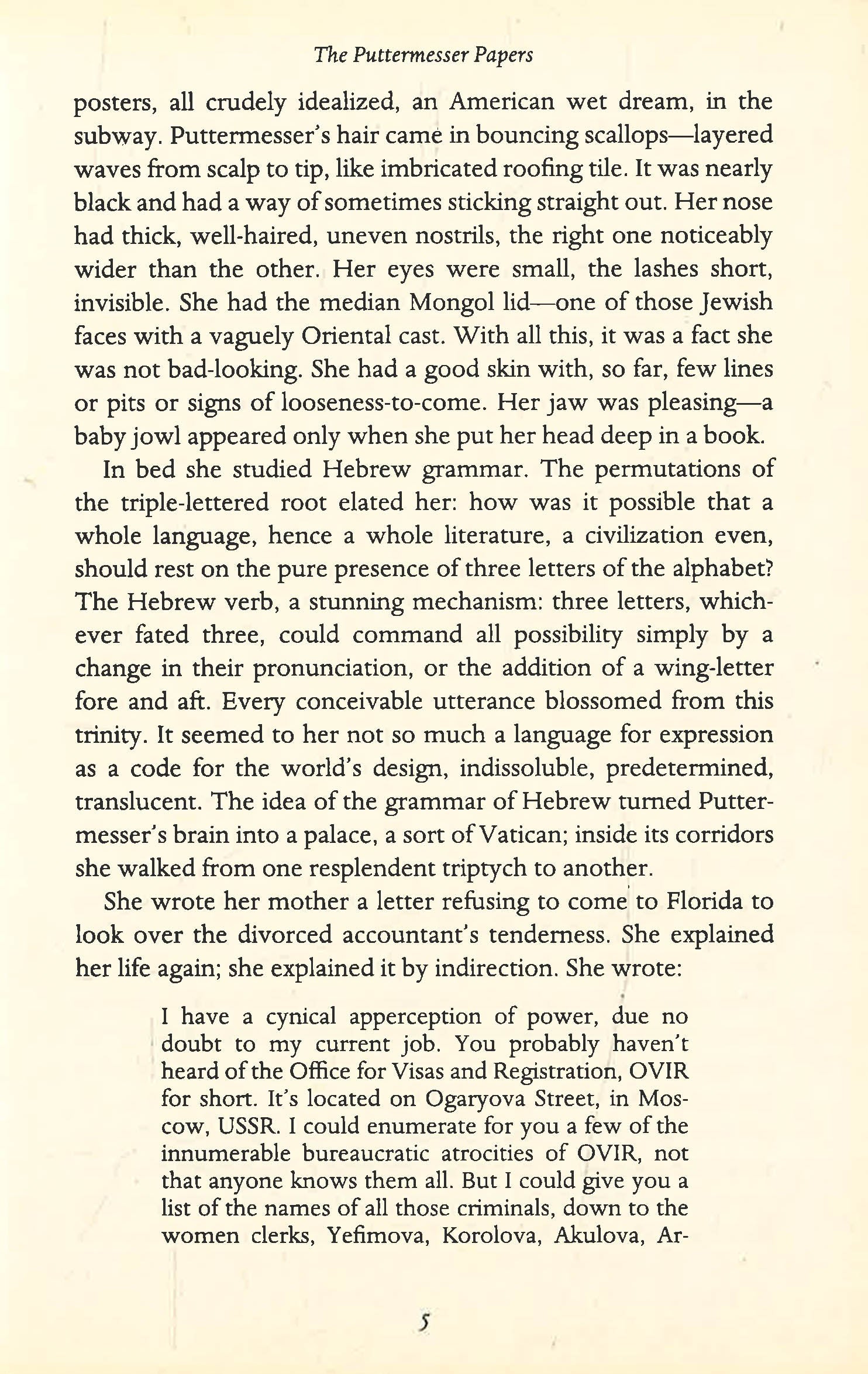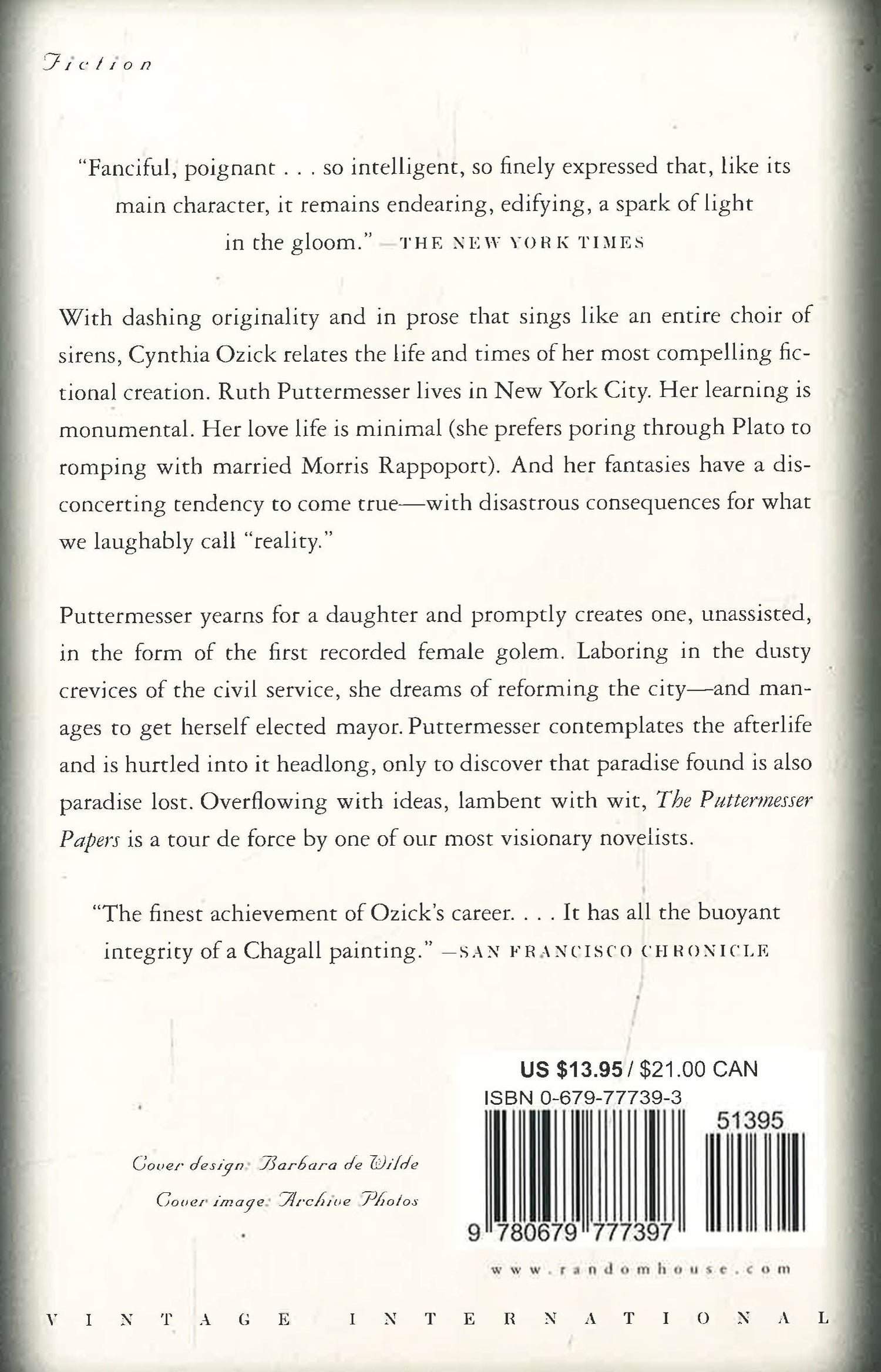 With dashing originality and in prose that sings like an entire choir of sirens, Cynthia Ozick relates the life and times of her most compelling fictional creation. Ruth Puttermesser lives in New York City. Her learning is monumental. Her love life is minimal (she prefers pouring through Plato to romping with married Morris Rappoport). And her fantasies have a disconcerting tendency to come true - with disastrous consequences for what we laughably call "reality."