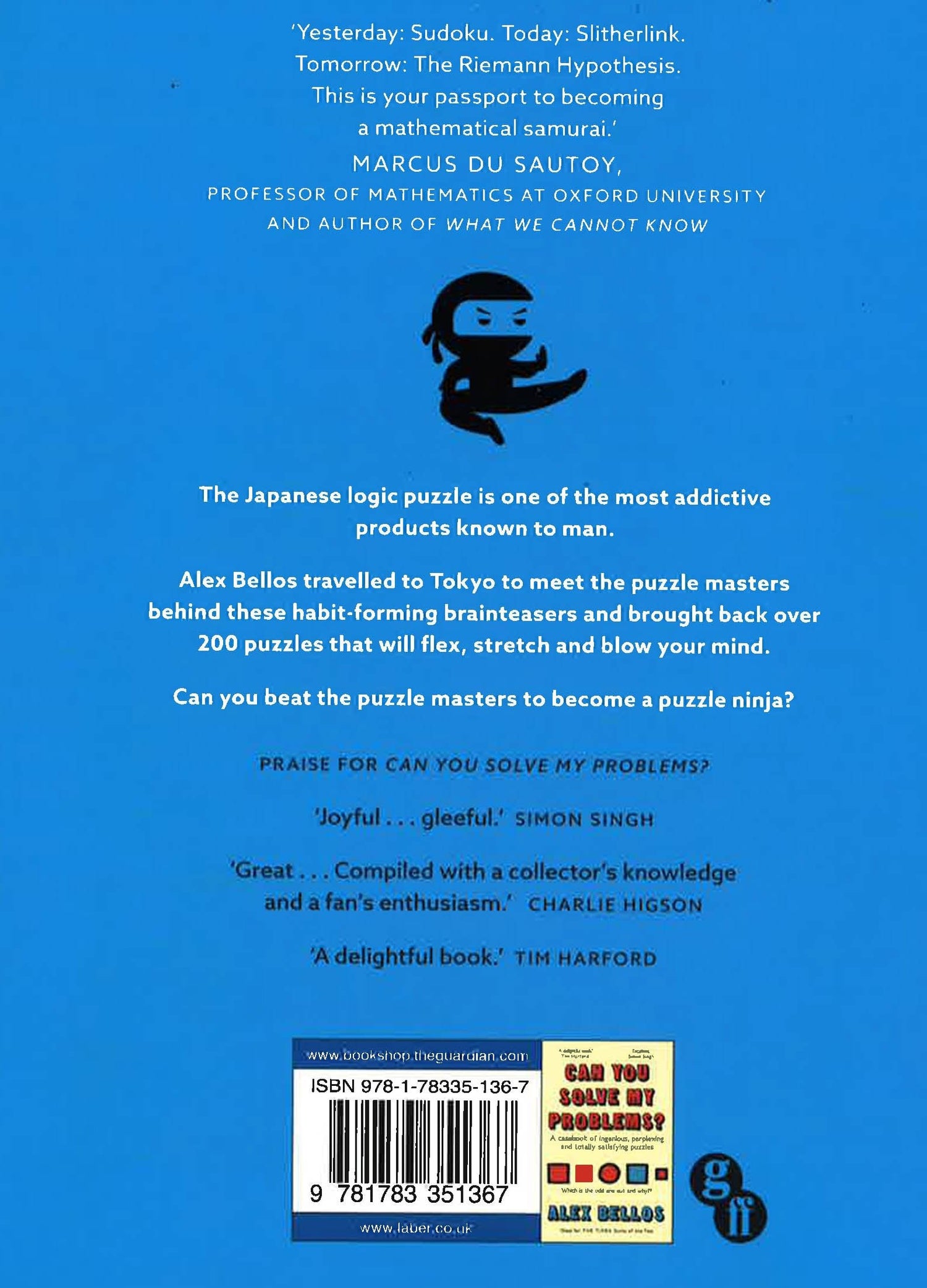 Puzzles are so enjoyable. They get your brain sparking and the competitive spirit flowing. Solving them is one of life's simple pleasures. The puzzle masters of Japan create the world's most satisfying puzzles, so Alex Bellos travelled to Tokyo to meet them. These enigmatologists include the god-father of Sudoku, the winner of the WorldPuzzle Championships, an inspiring teacher who uses games to enliven his students' maths lessons, and the puzzle poet whose name has become a Sudoku-solving technique. They use noms de guerre - Edamame, Lenin, Teatime, Sesame Egg - and each has a distinctive style. What unites them are their megawatt brains and the beauty of their hand-crafted puzzles, which will challenge and sharpen your mind. Bellos has collected over 200 of their most ingenious puzzles, rated easy to excruciating , and introduces over 20 new types of addictive problems including Shakashaka and Marupeke. Arm yourself with pencil, eraser and laser-like focus. Let's get puzzling . . .