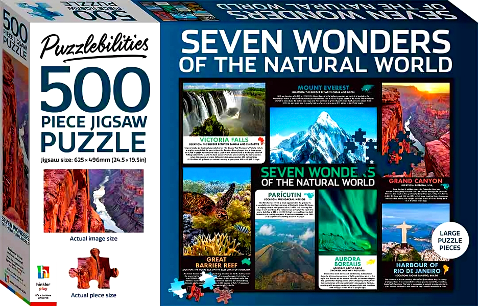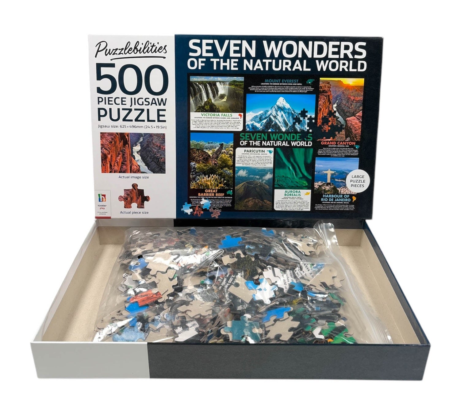 Discover the Seven Wonders of the Natural World with this Puzzlebilities 500-piece Jigsaw. Whether you love puzzles or learning about the world, there’s hours of fun to have piecing it together either by yourself or with family and friends!