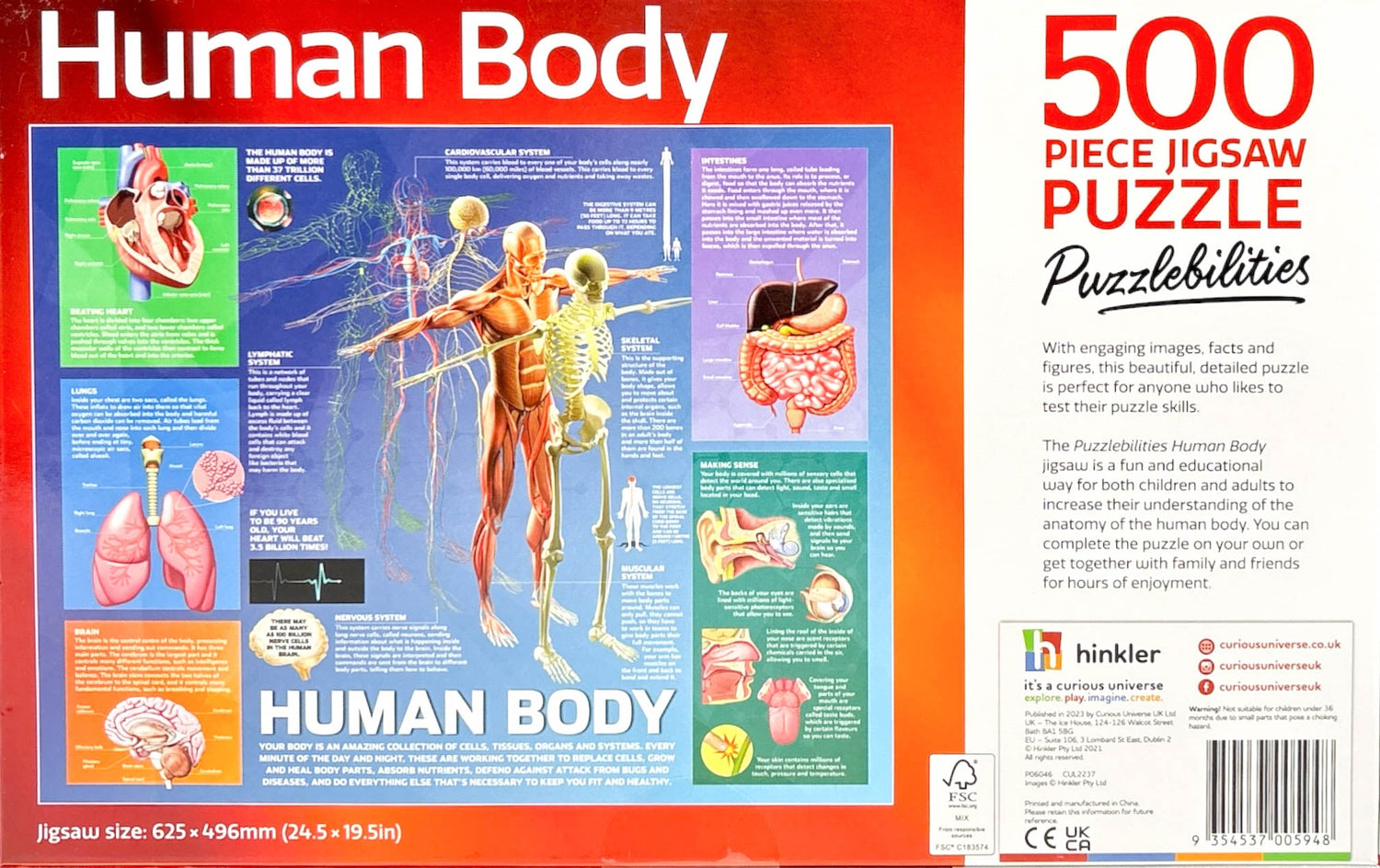Have hours of fun piecing together these puzzle pieces to create a detailed image of the human body. This informative puzzle includes 500 high quality large jigsaw pieces.
