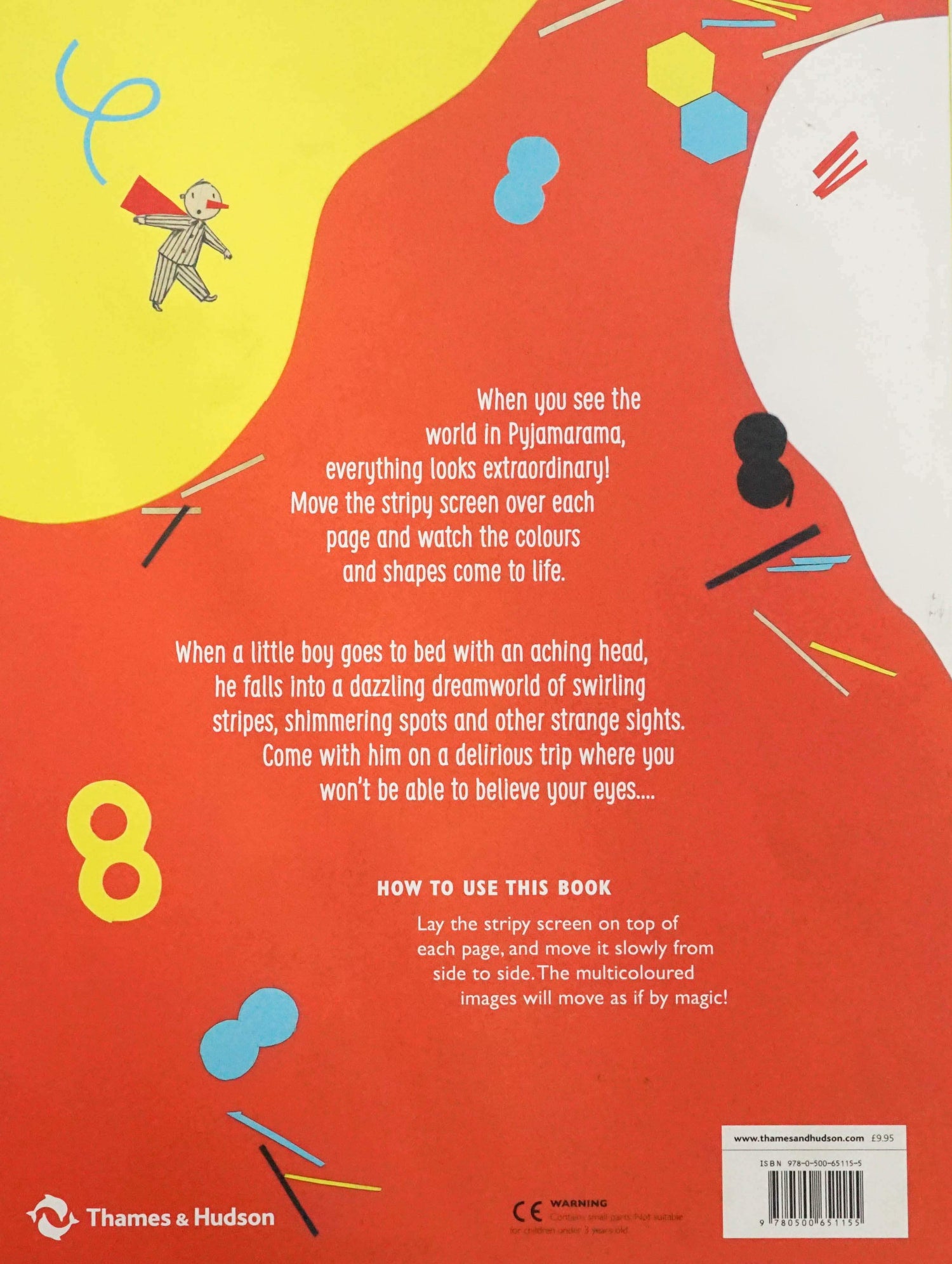 When you see the world in Pyjamavision, everything looks extraordinary! Move the stripy screen over each page and watch the colours and shapes come to life. When a little boy puts on his pyjamas and goes to bed, he falls into a dazzling dreamworld of swirling stripes, shimmering spots and other strange sights. Come with him on a fabulous trip where you won't be able to believe your eyes....