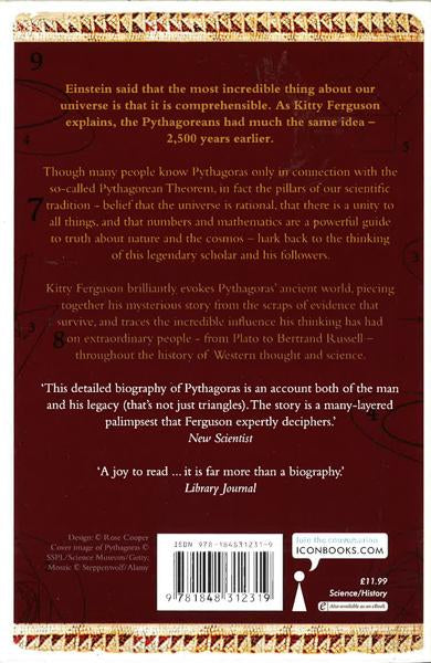 This is the story of Pythagoras and the Pythagoreans, whose insights transformed the ancient world and still inspire the realms of science, mathematics, philosophy and the arts. Einstein said that the most incredible thing about our universe was that it was comprehensible at all. As Kitty Ferguson explains, Pythagoras had much the same idea - but 2,500 years earlier. Though known by many only for his famous Theorem, in fact the pillars of our scientific tradition - belief that the universe is rational, that there is unity to all things, and that numbers and mathematics are a powerful guide to truth about nature and the cosmos - hark back to the convictions of this legendary scholar. Kitty Ferguson brilliantly evokes Pythagoras' ancient world of, showing how ideas spread in antiquity, and chronicles the incredible influence he and his followers have had on so many extraordinary people in the history of Western thought and science. 'Pythagoras' influence on the ideas, and therefore on the destiny, of the human race was probably greater than that of any single man before or after him' - Arthur Koestler.