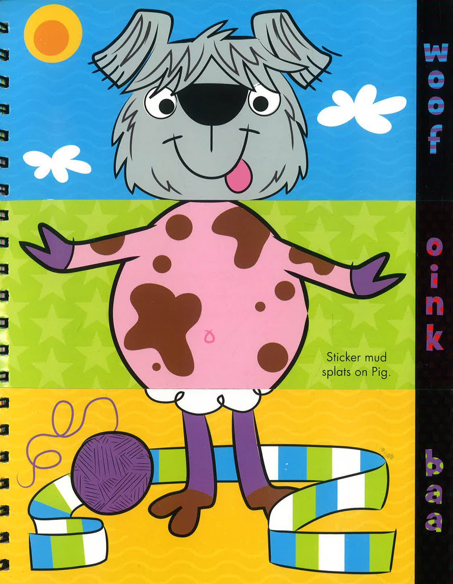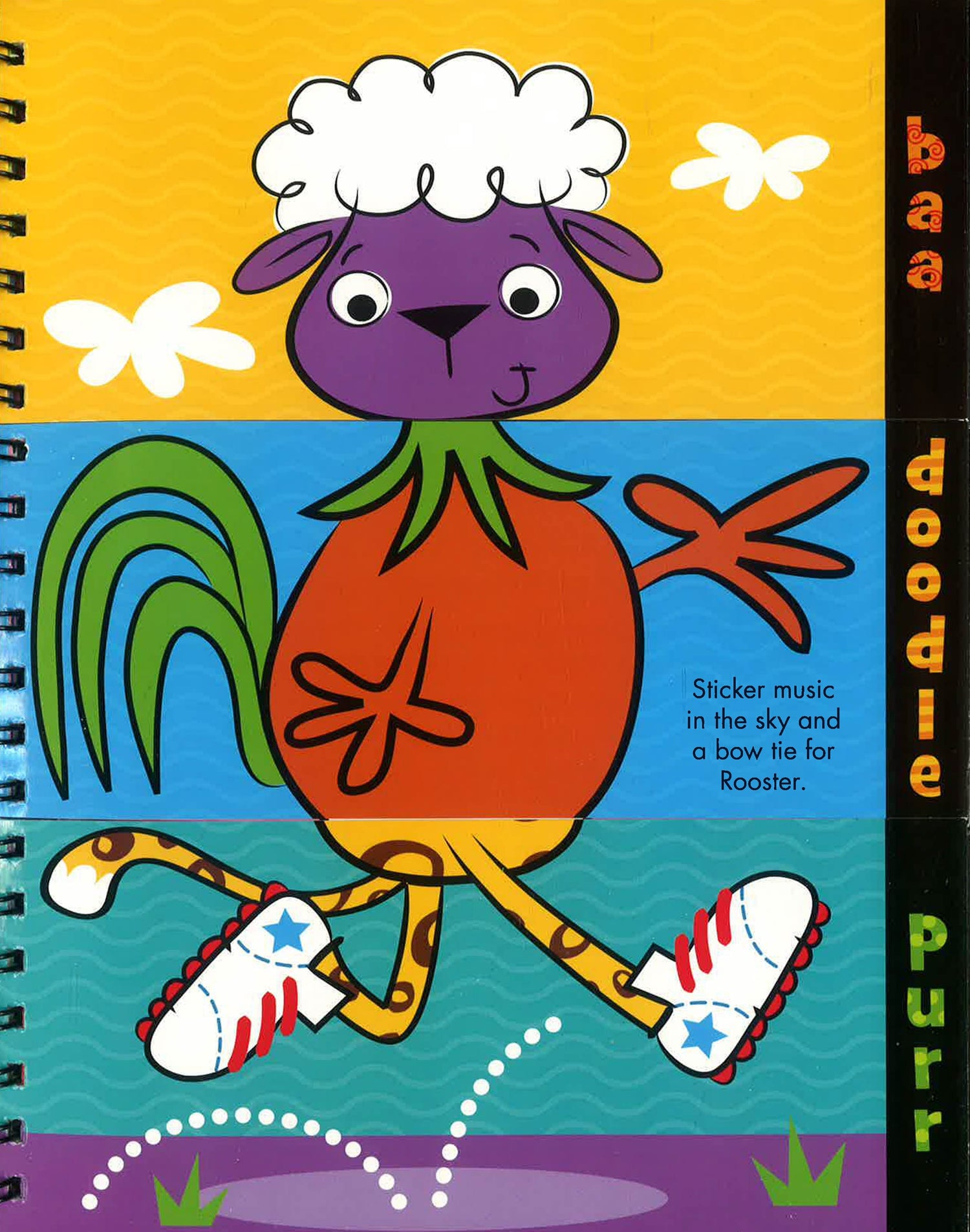 Adorable, split-page activity book that creates weird and wonderful creatures! Have fun mixing and matching lots of cool animals in Quack-a-doodle-moo ! The pages in this book are cut horizontally into three sections, which can be flipped in any order you want to create weird and wonderful creatures! The split pages also feature simple, funny sentences, which can traced with the wipe-clean pen, then mixed up! Use over 100 stickers to finish the pictures in the book - or stick them wherever you want!