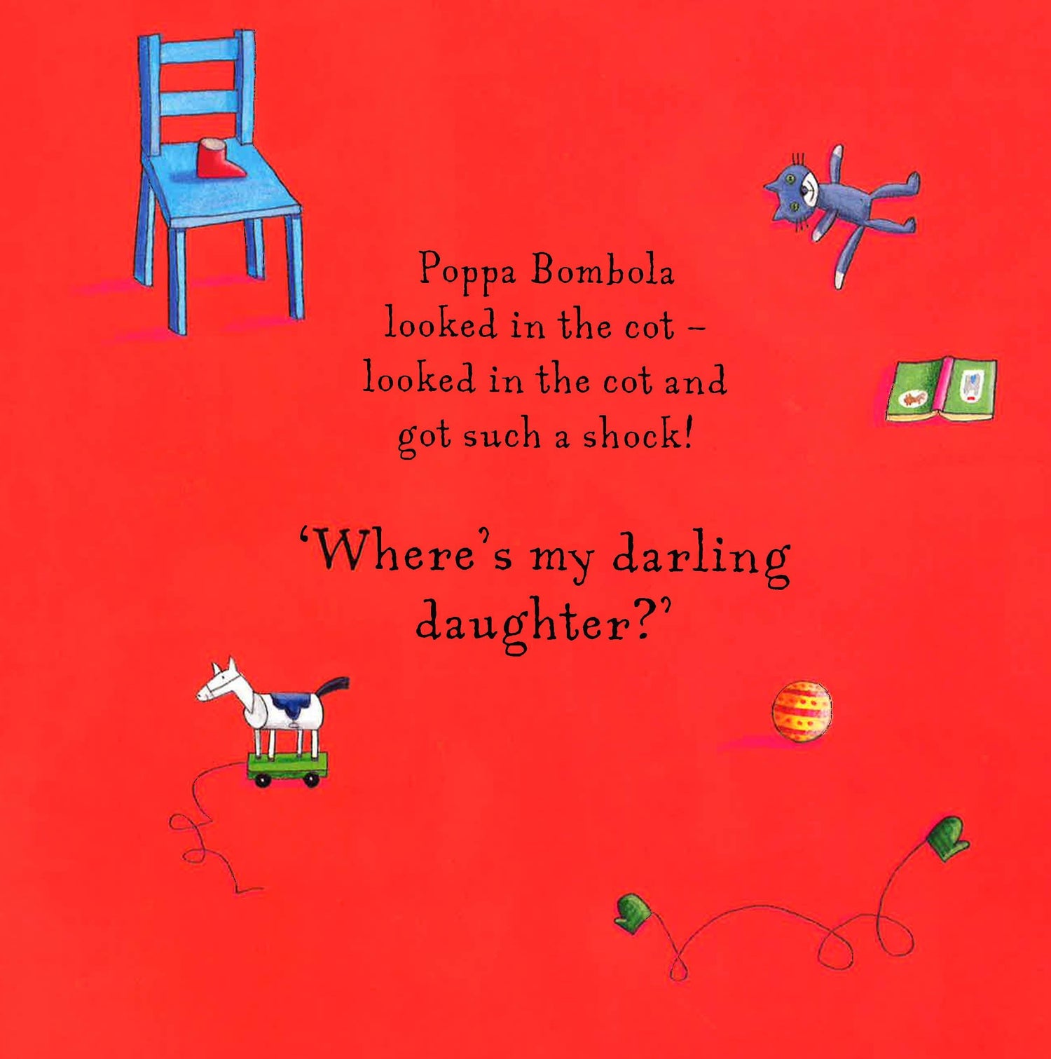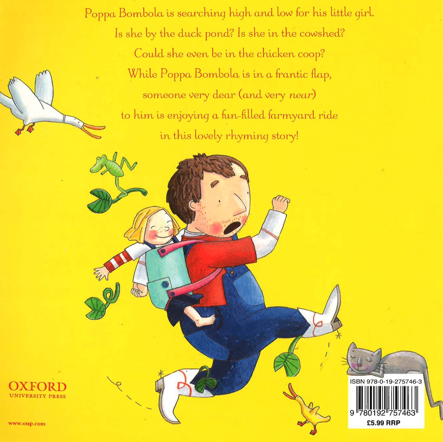 Poppa Bombola is searching high and low for his little girl. Is she by the duck pond? Is she in the cowshed? Could she even be in the chicken coop? While Poppa Bombola is in a frantic flap, someone very dear (and very near) to him is enjoying a fun-filled farmyard ride in this lovely rhyming story!