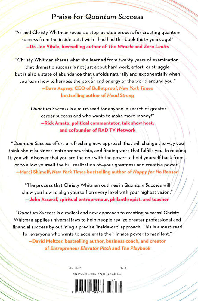 In the bestselling tradition of The Secret, learn how to use the law of attraction for your career to access greater financial success and fulfillment in this positive, detailed guide from celebrated life coach and New York Times bestselling author of The Art of Having It All, Christy Whitman. Whether your vision of an ideal career is starting your own business, rising to a different position within your current company, or landing your very first job, Quantum Success will help you make the prosperity and fulfillment of your dreams a reality.