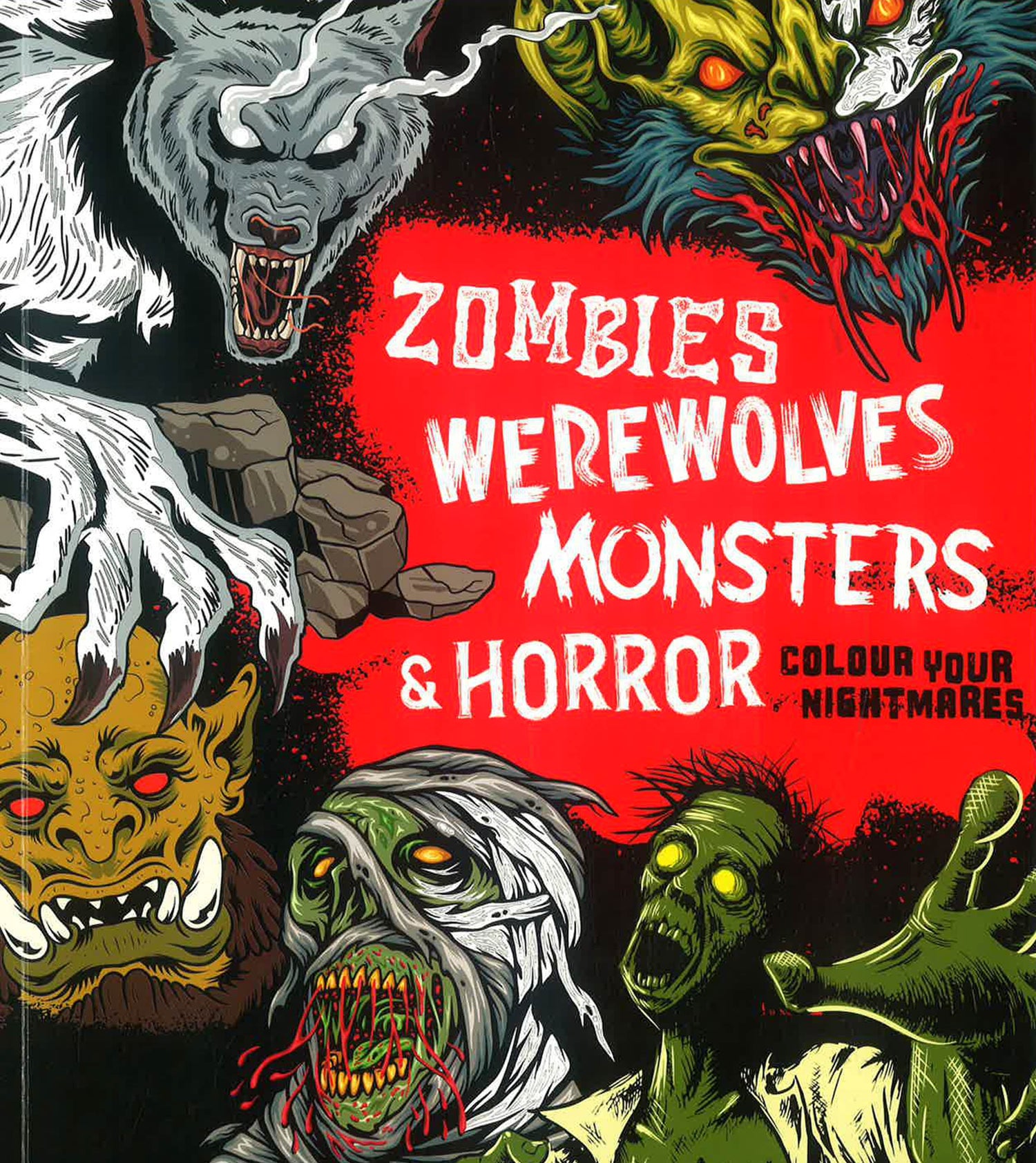 Color the hair-raising and frightening monsters and other things that go bump in the night in Zombies, Werewolves, Monsters & Horror.