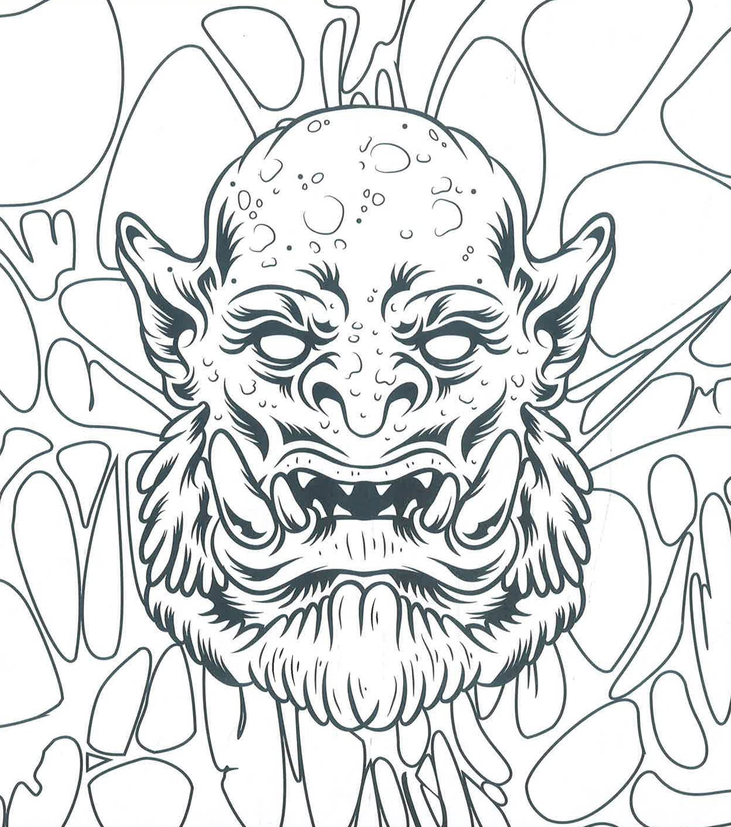 Just as there is no right or wrong way to use this book, there is no right or wrong way to color. You can color these horrifying illustrations however you wish and in whatever way feels right to you. Slasher reds, chilling blues, toxic greens, it’s all up to you! This is about letting go and submersing yourself in this world, so if one coloring template doesn’t leave you shaking in your boots, simply move on to one that does.