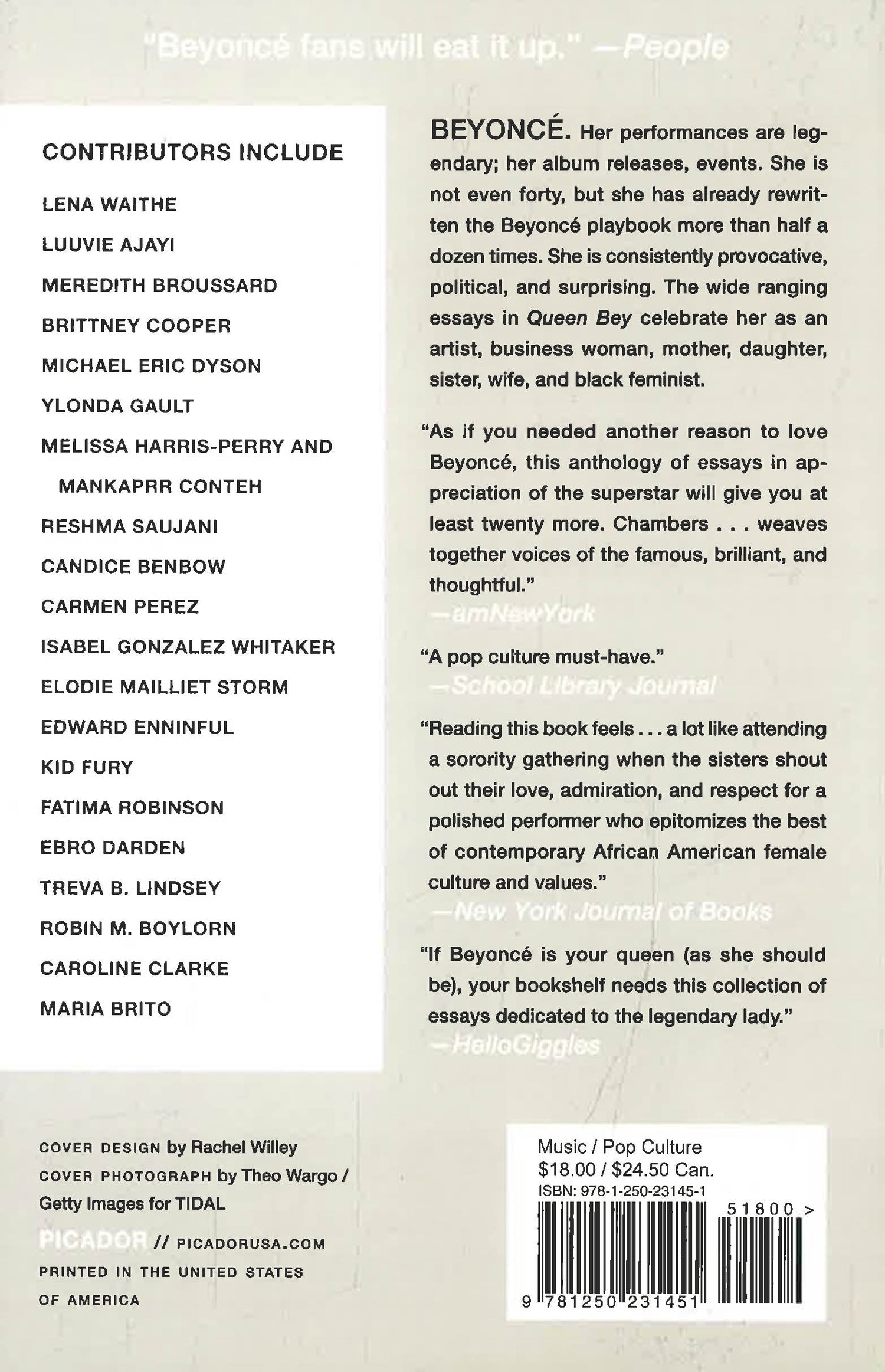 Queen Bey features a diverse range of voices, from star academics to outspoken cultural critics to Hollywood and music stars. Essays include: