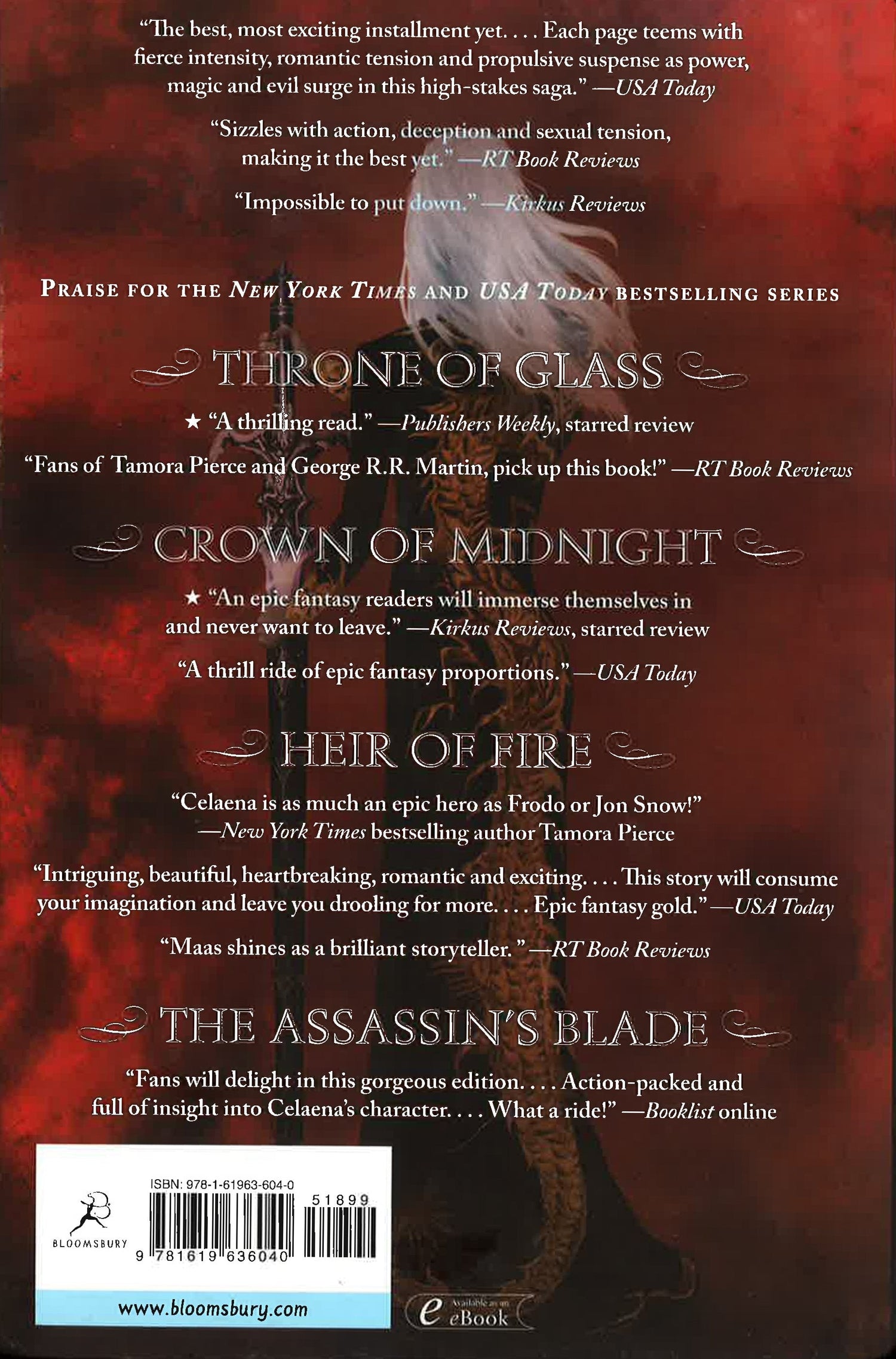 Sarah J. Maas's New York Times bestselling Throne of Glass series reaches new heights in this sweeping fourth volume.Everyone Celaena Sardothien loves has been taken from her. But she's at last returned to the empire - for vengeance, to rescue her once-glorious kingdom, and to confront the shadows of her past . . . She has embraced her identity as Aelin Galathynius, Queen of Terrasen. But before she can reclaim her throne, she must fight.She will fight for her cousin, a warrior prepared to die just to see her again. She will fight for her friend, a young man trapped in an unspeakable prison. And she will fight for her people, enslaved to a brutal king and awaiting their lost queen's triumphant return.