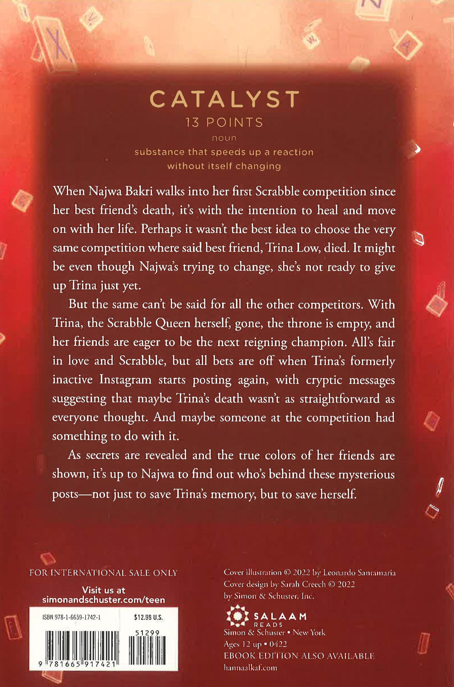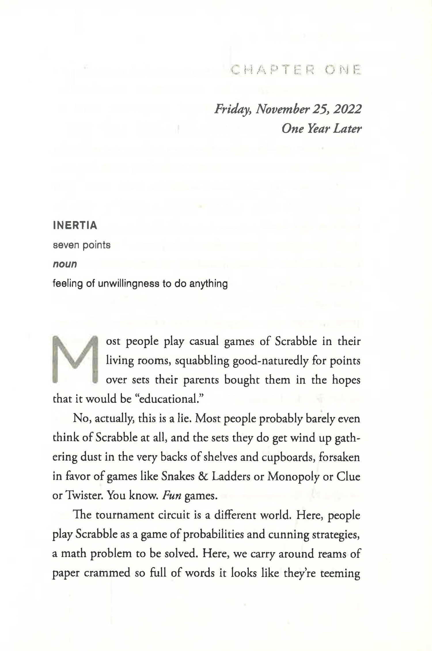 But the same can’t be said for all the other competitors. With Trina, the Scrabble Queen herself, gone, the throne is empty, and her friends are eager to be the next reigning champion. All’s fair in love and Scrabble, but all bets are off when Trina’s formerly inactive Instagram starts posting again, with cryptic messages suggesting that maybe Trina’s death wasn’t as straightforward as everyone thought. And maybe someone at the competition had something to do with it.