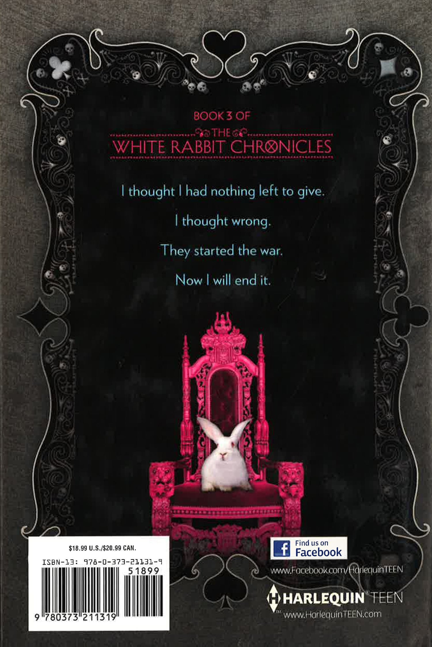 I have a plan. We'll either destroy them for good, or they'll destroy us. Either way, only one of us is walking away. In the stunning conclusion to the wildly popular White Rabbit Chronicles, Alice "Ali" Bell thinks the worst is behind her. She's ready to take the next step with boyfriend Cole Holland, the leader of the zombie slayers...until Anima Industries, the agency controlling the zombies, launches a sneak attack, killing four of her friends. It's then she realizes that humans can be more dangerous than monsters...and the worst has only begun. As the surviving slayers prepare for war, Ali discovers she, too, can control the zombies...and she isn't the girl she thought she was. She's connected to the woman responsible for killing--and turning--Cole's mother. How can their relationship endure? As secrets come to light, and more slayers are taken or killed, Ali will fight harder than ever to bring down Anima--even sacrificing her own life for those she loves.