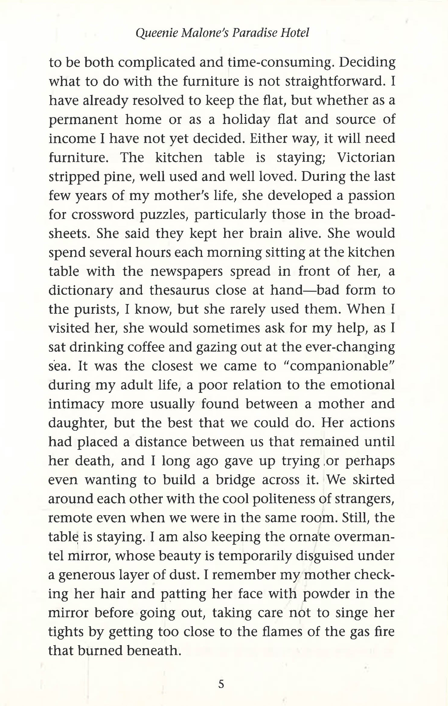 Now an adult, Tilda has grown into an independent woman still damaged by her mother's unaccountable cruelty. Wary of people, her only true friend is her dog, Eli. When her estranged mother dies, Tilda returns to Brighton and the home she loved best. With the help of the still-dazzling Queenie, she sets about unraveling the mystery of her exile from The Paradise Hotel, only to discover that her mother was not the woman she thought she knew at all...and that it's never too late to write your own happy ending.