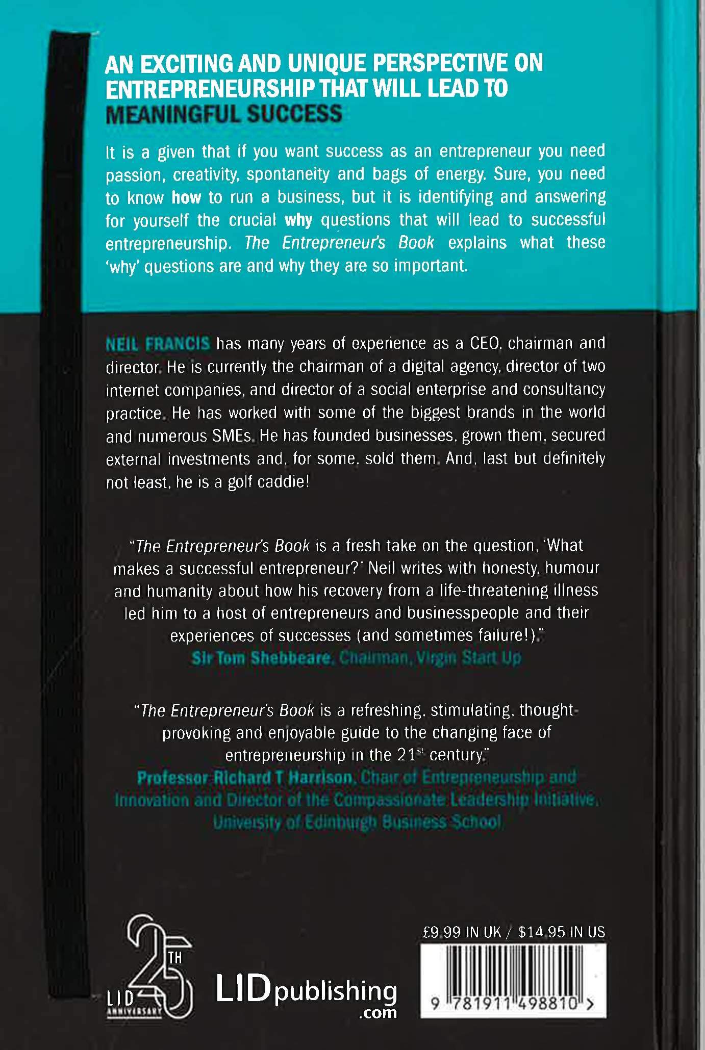 Discover, explore and understand the fundamentals that are required for success as an entrepreneur.Though entrepreneurs understand the `mechanics' of running a business (how to) they don't always understand the fundamentals which ultimately decide success or failure. Through his own experiences and conversations with 100's of successful people, Neil Francis concludes that a route to success is about understanding and answering what he calls the `why' questions. Each chapter starts with a `why' question and focuses on the `fundamentals' required for successful and sustainable entrepreneurship such as purpose, innovation, love, desire, failure and luck. These very `human' stories, combined with the author's own unique experiences help to illustrate the core fundamentals of successful entrepreneurship. With an achievable and practical roadmap to success, The Entrepreneur's Book is a unique and important book which will benefit aspiring entrepreneurs and those who are already `in business'.