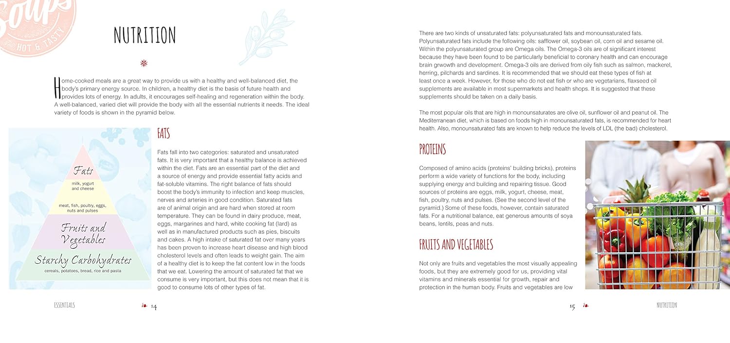 Soups is ideal for impressing guests with tantalizing appetizers or simply creating tasty snacks. Beginning with a section on nutrition and kitchen hygiene, "Soups" details a number of mouthwatering recipes from around the world, including Wonton Soup and Italian Bean Soup. After selecting the right dish for you the clear photography and text will allow for a quick and easy cooking experience. New recipes.