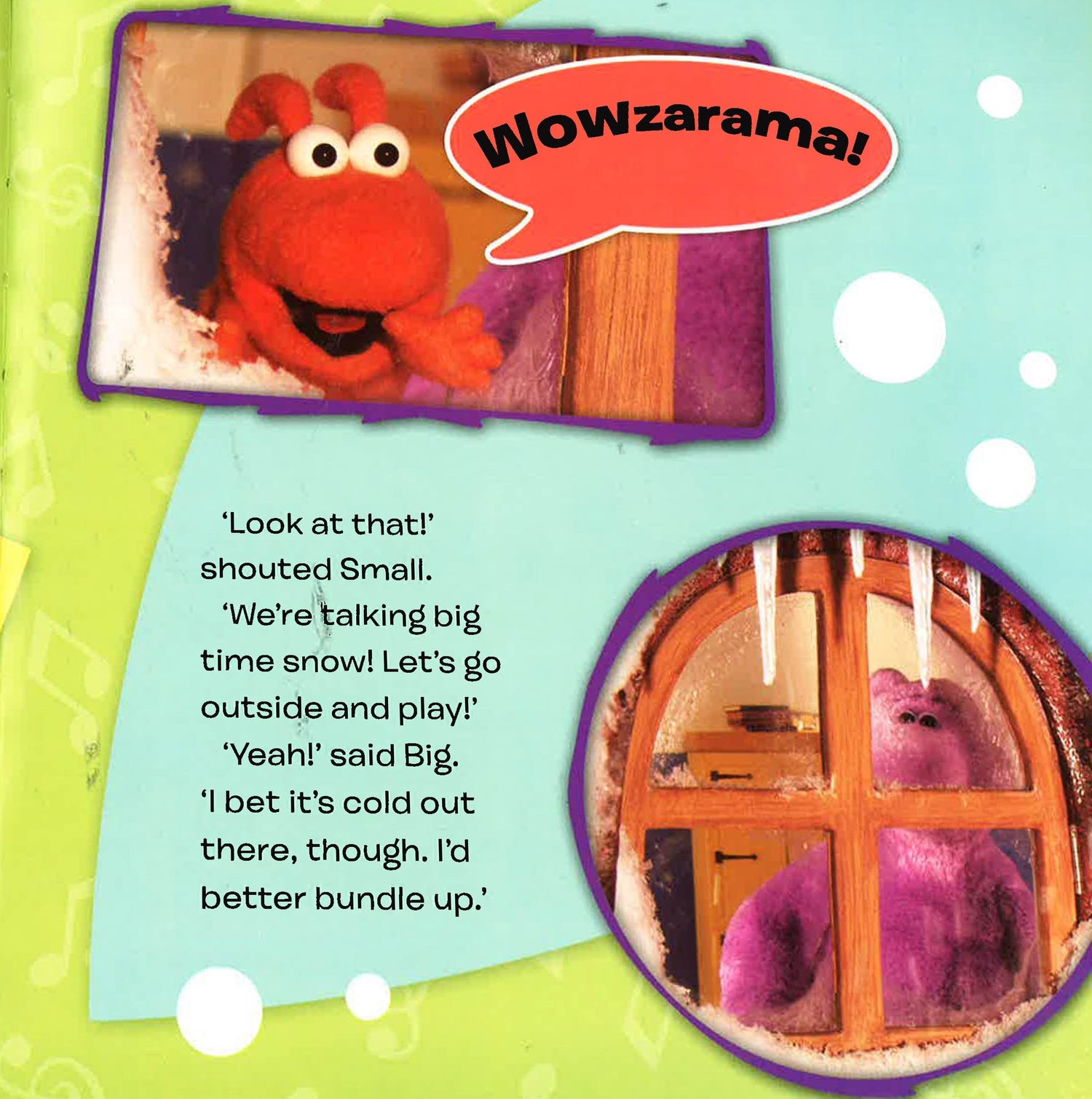 Wowzarama! There's big time snow in the garden. Small can't decide what to do first. Should he slide, skate, make a snowman or throw a snowball? Big has an even better idea - sledging! Will Small learn how to wait his turn? And will he be brave enough to sledge down the very steep hill?
