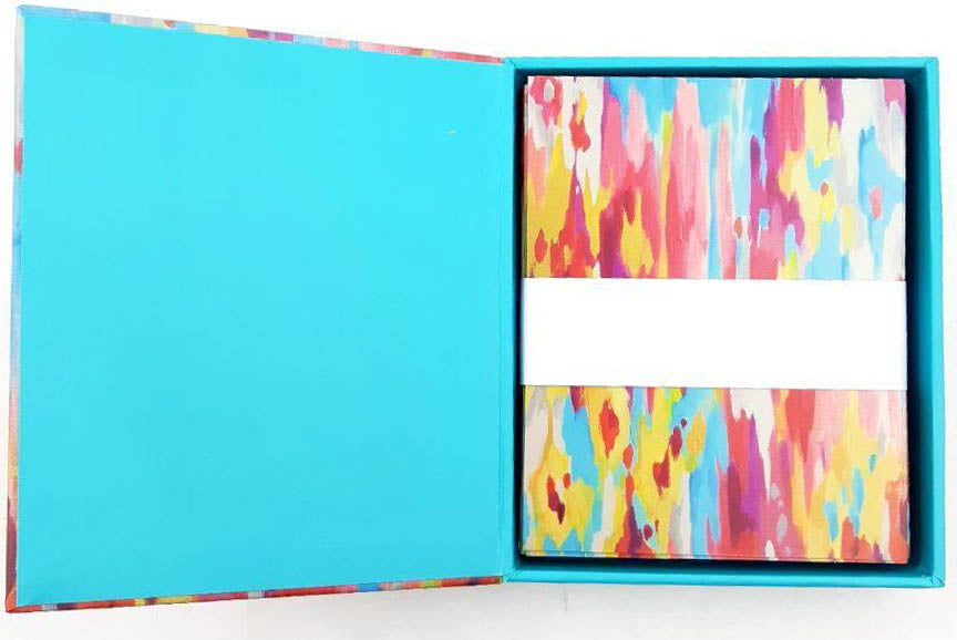 Beautiful full color notecards with artwork inspired by ikat textile designs, this boxed notecard set features vibrantly-colored abstract imagery.