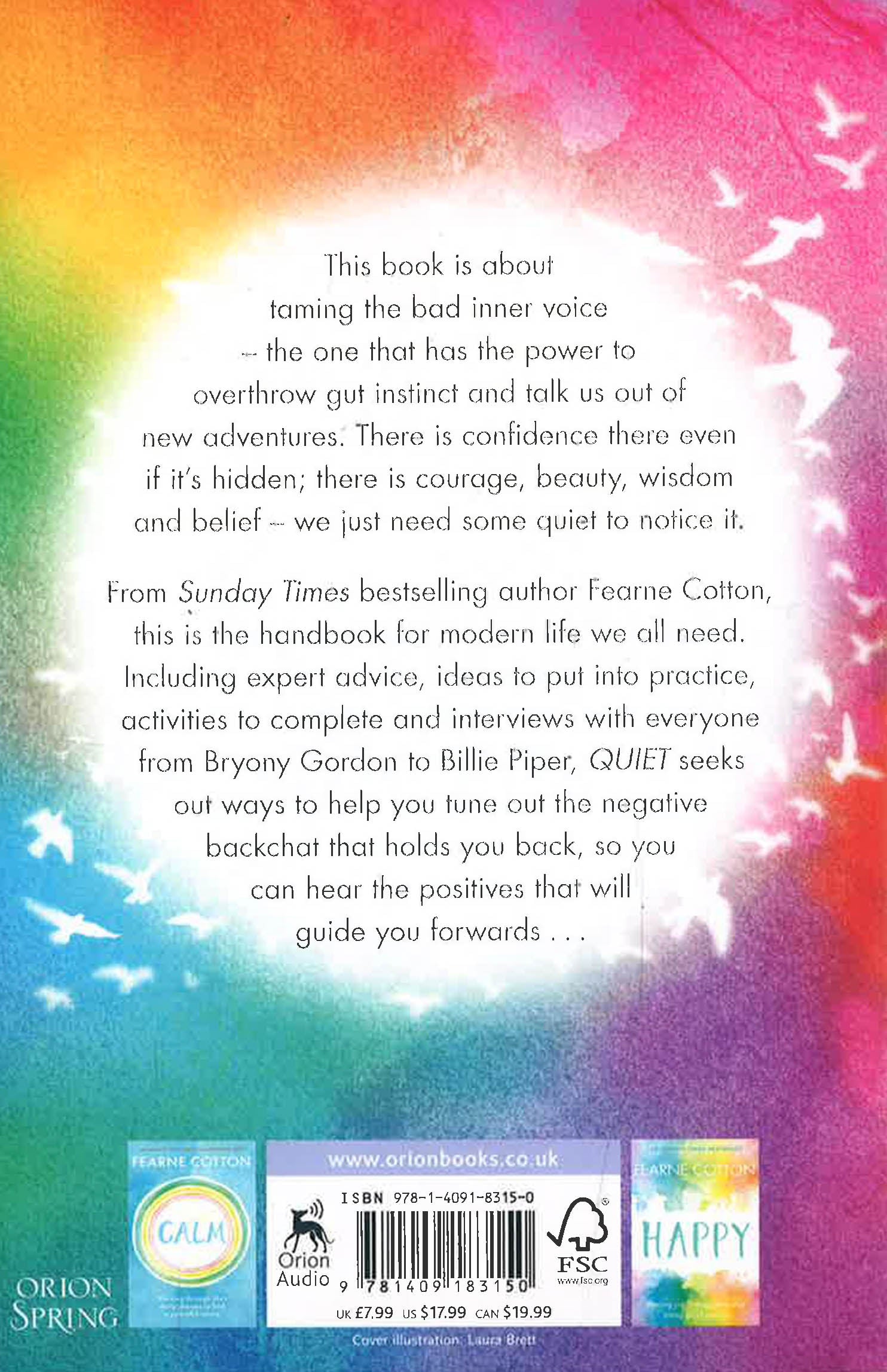 Fearne Cotton and Frankie Bridge have encouraged fans to open up about their mental health issues in inspirational social media posts' HelloThis book is about taming the bad inner voice - the one that has the power to overthrow gut instinct and talk us out of new adventures. We are all brimming with inner wisdom, yet we allow negative thoughts to confuse us. We forget how capable and strong we can be. There is confidence there even if it's hidden; there is courage, beauty, wisdom and belief - we just need some quiet to notice it.Love, Fearne xxx-From Sunday Times bestselling author Fearne Cotton, this is the handbook for modern life we all need. Including expert advice, ideas to put into practice, adventures to complete and interviews with everyone from Bryony Gordon to Billie Piper, Quiet seeks out ways to help you tune out the negative backchat that holds you back, so you can hear the positives that will guide you forwards . . .PRAISE FOR FEARNE HAPPYFearne's account is wonderfully honest and relatable, and it's also extremely comforting and reassuring too - knowing that even someone in her position is still working through certain issues - issues that a lot of us are working through too. (MIND)Fearne Cotton's new book is full of useful advice on how to live a happier life. (Viv Groskop THE POOL)I recommend this for anyone who's looking to find true consistent happiness (Craig David)She's known for her fun and upbeat presenting style, but Fearne Cotton has also been bravely open about her struggle with depression during some darker points in her life. . . In our busy 2017 lives that are constantly fuelled by Instagram envy, bad Tinder dates and increasingly outrageous politicians, it's nice to go over the basics of simply being happy. (OK!)