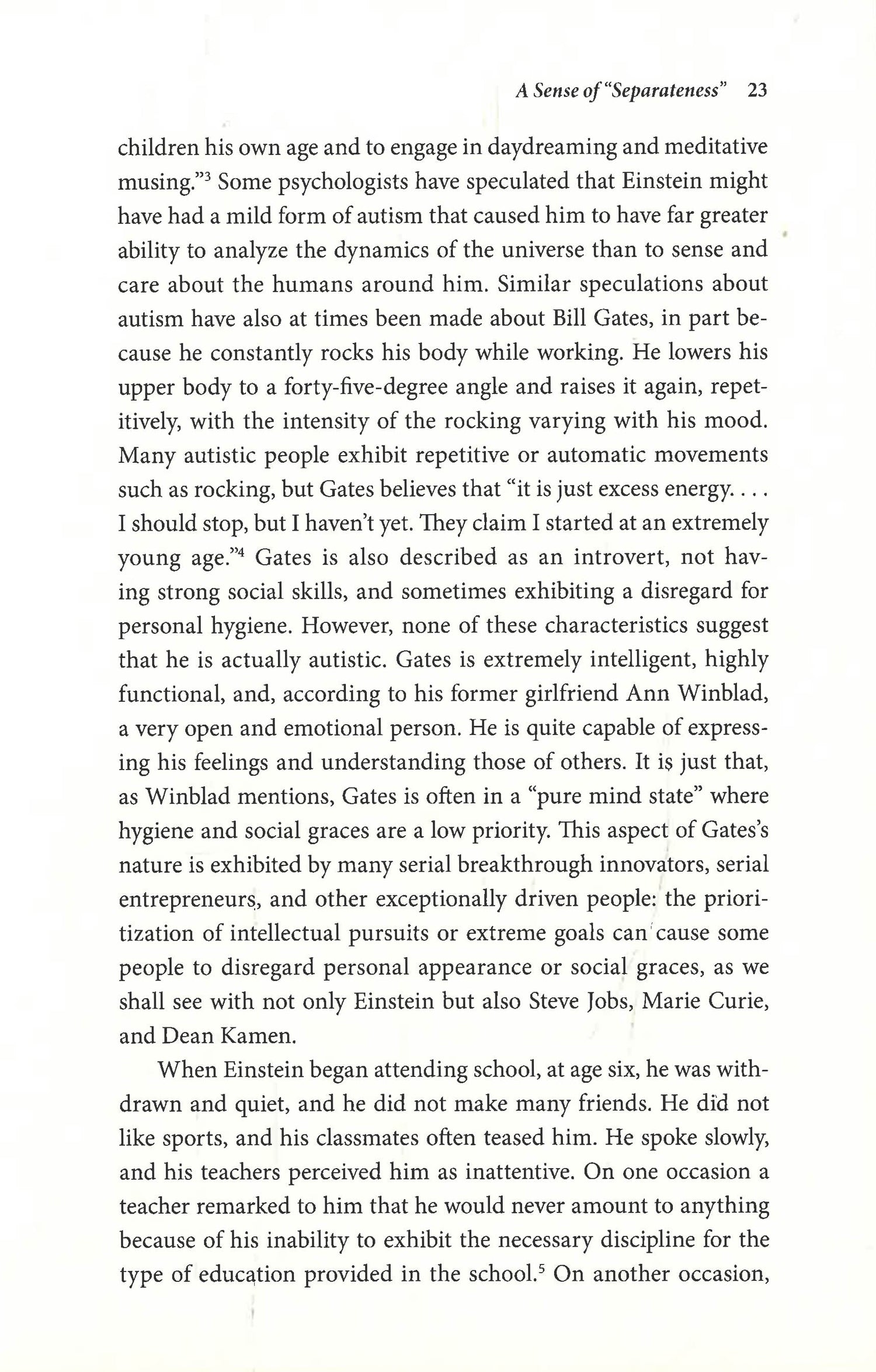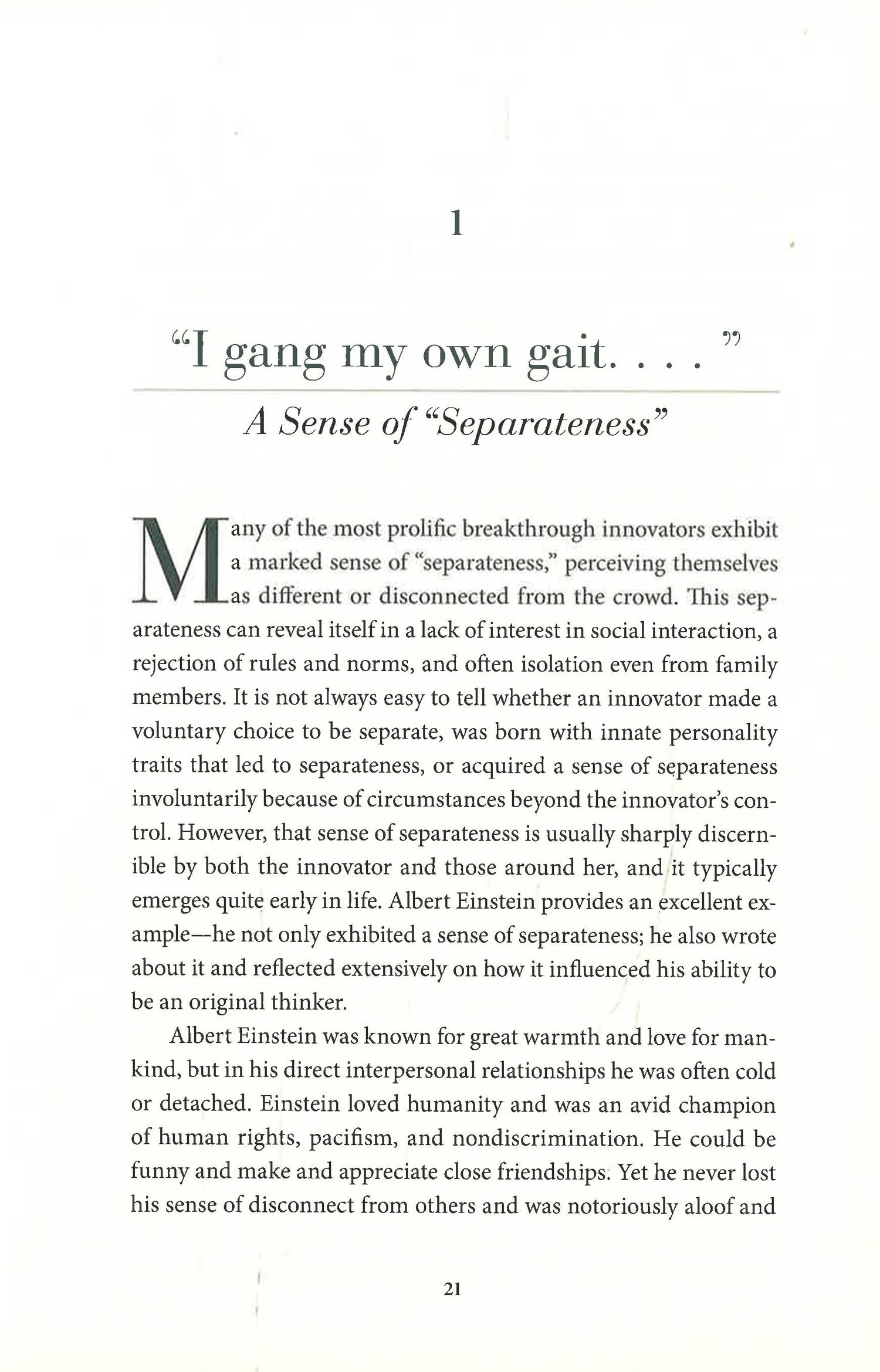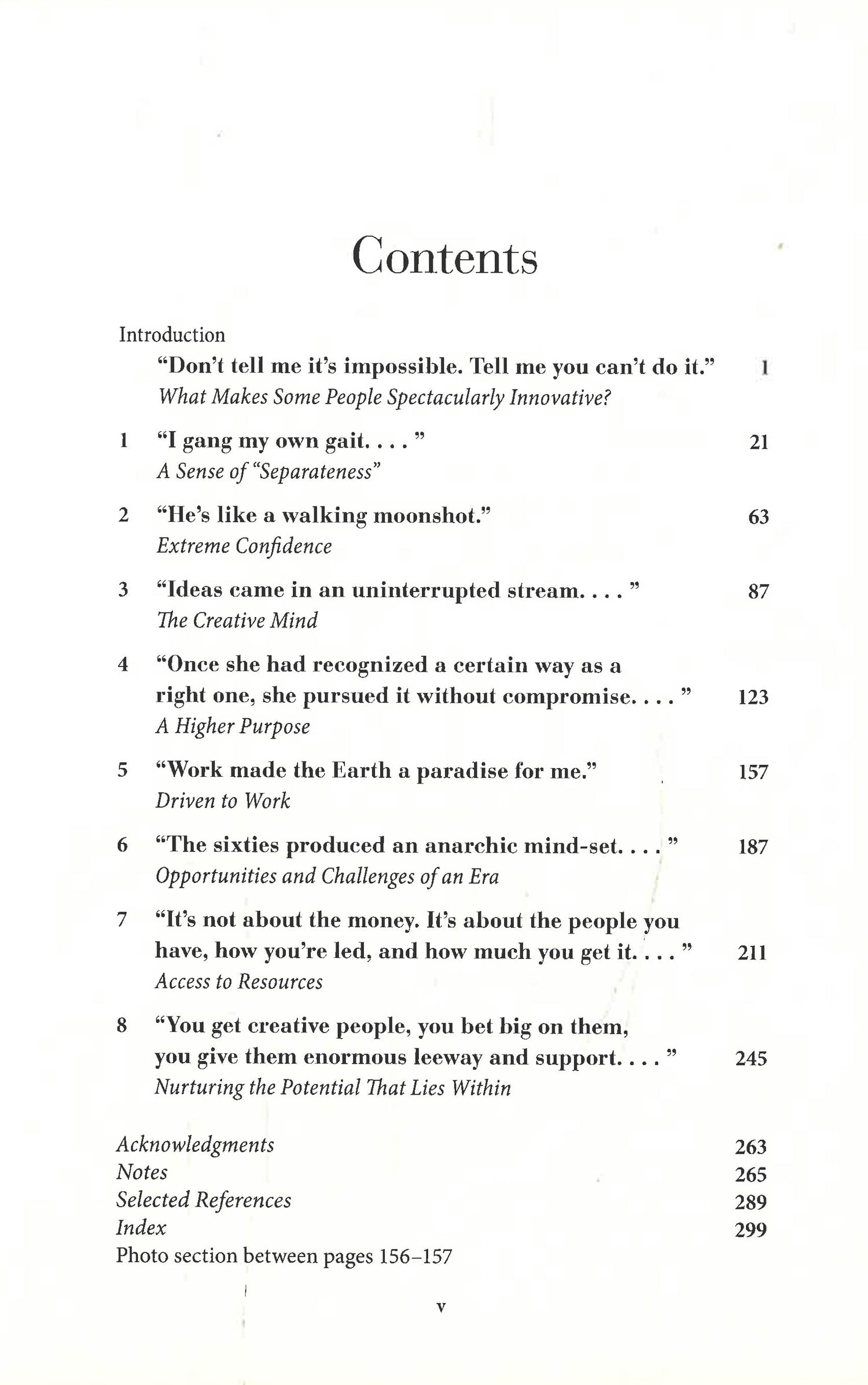 Though all innovators possess incredible intellect, intellect alone does not create a serial innovator. There are other very strong commonalities: for instance, nearly all exhibit very high levels of social detachment. They all have extreme, almost maniacal, faith in their ability to overcome obstacles. And they have a passionate idealism that pushes them to work with intensity even in the face of criticism or failure. These individual traits would be unlikely to work in isolation--being unconventional without having high levels of confidence and direction, for example, might result in rebellious behavior that does not lead to meaningful innovation.