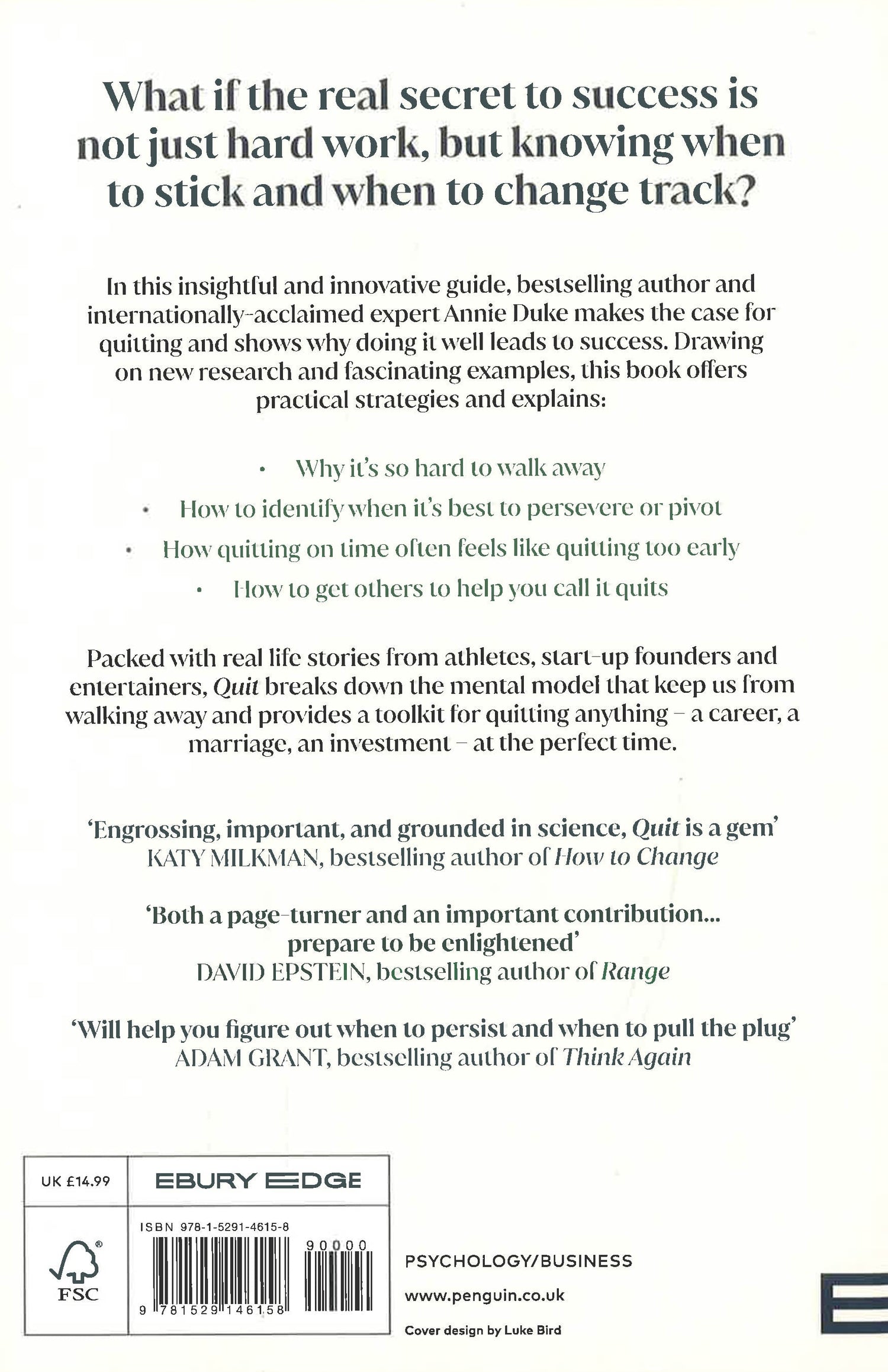 After the pandemic, many of us are starting to rethink our old habits. Whether you are considering moving away from the city, leaving a job, selling stocks, ending a relationship or just giving up on a plan or project to start something different, QUIT provides a toolkit for change to make better decisions. Packed with refreshing and counter-intuitive stories of when perseverance is the wrong response, this book will give you the tools you need to live your best life.