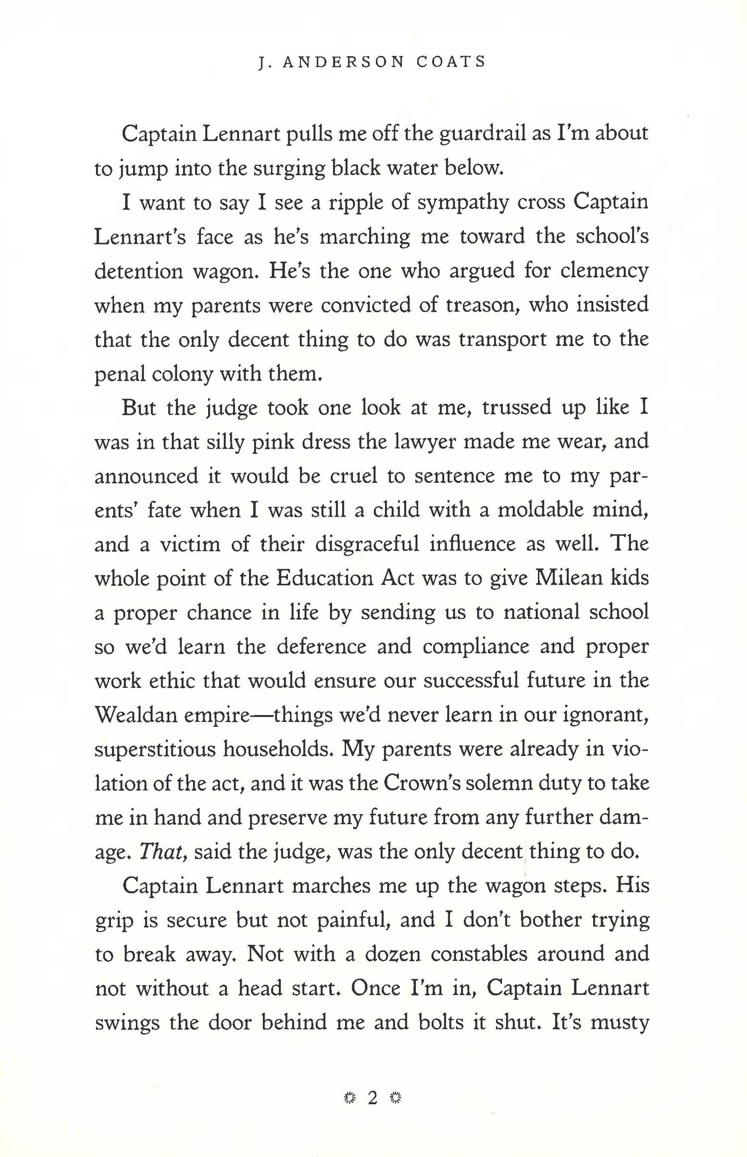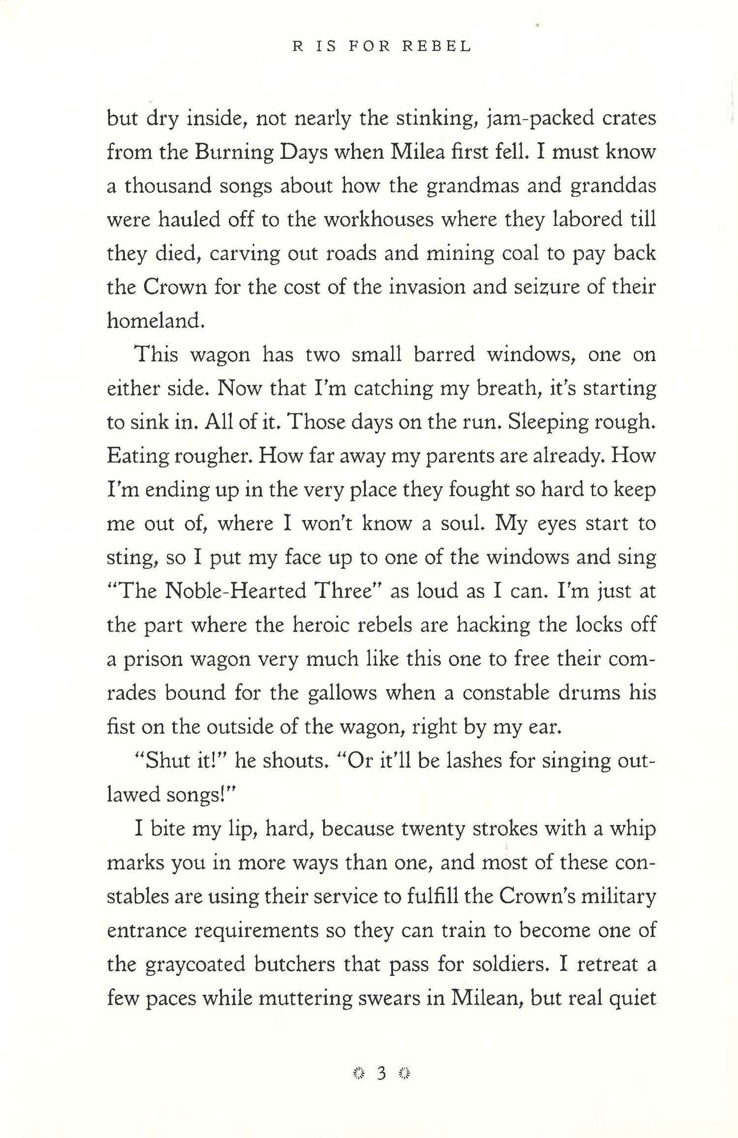 Princess Academy meets Megan Whalen Turner in this stunning novel about a girl who won't let anything tame her spirit--not the government that conquered her people, and definitely not reform school! Malley has led the constables on a merry chase across her once-peaceful country. With her parents in prison for their part in a failed resistance movement, the government wants to send her to a national school--but they'll have to capture her first. And capture her they do. Malley is carted off be reformed as a proper subject of the conquering empire, reeducated, and made suitable for domestic service. That's the government's plan, anyway. But Malley will not go down without a fight. She's determined to rally her fellow students to form a rebellion of their own. The government can lock these girls up in reform school. Whether it can break them is another matter entirely...