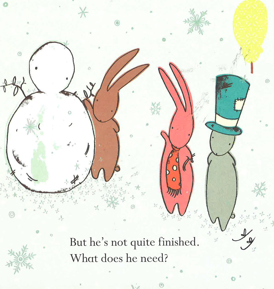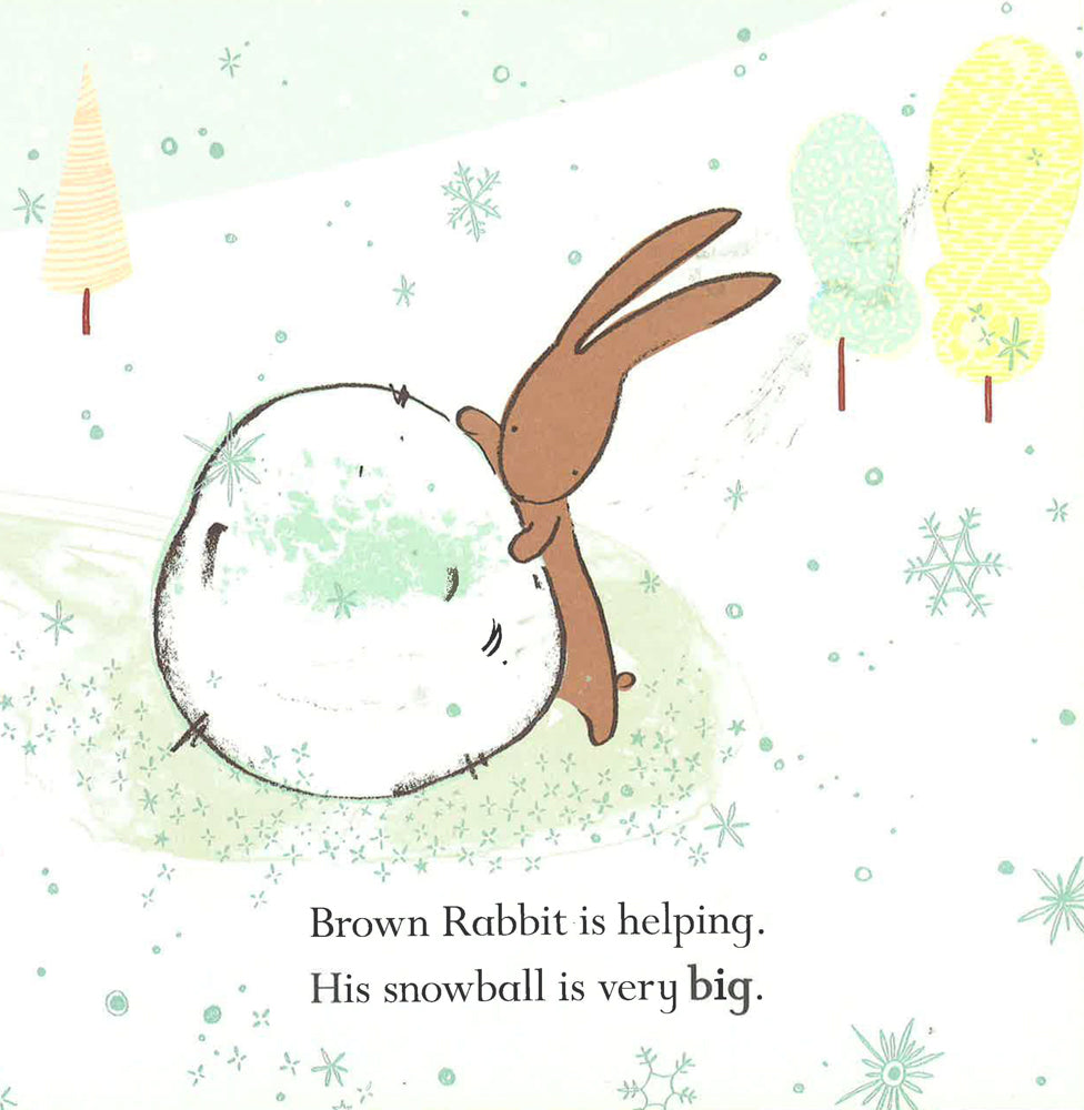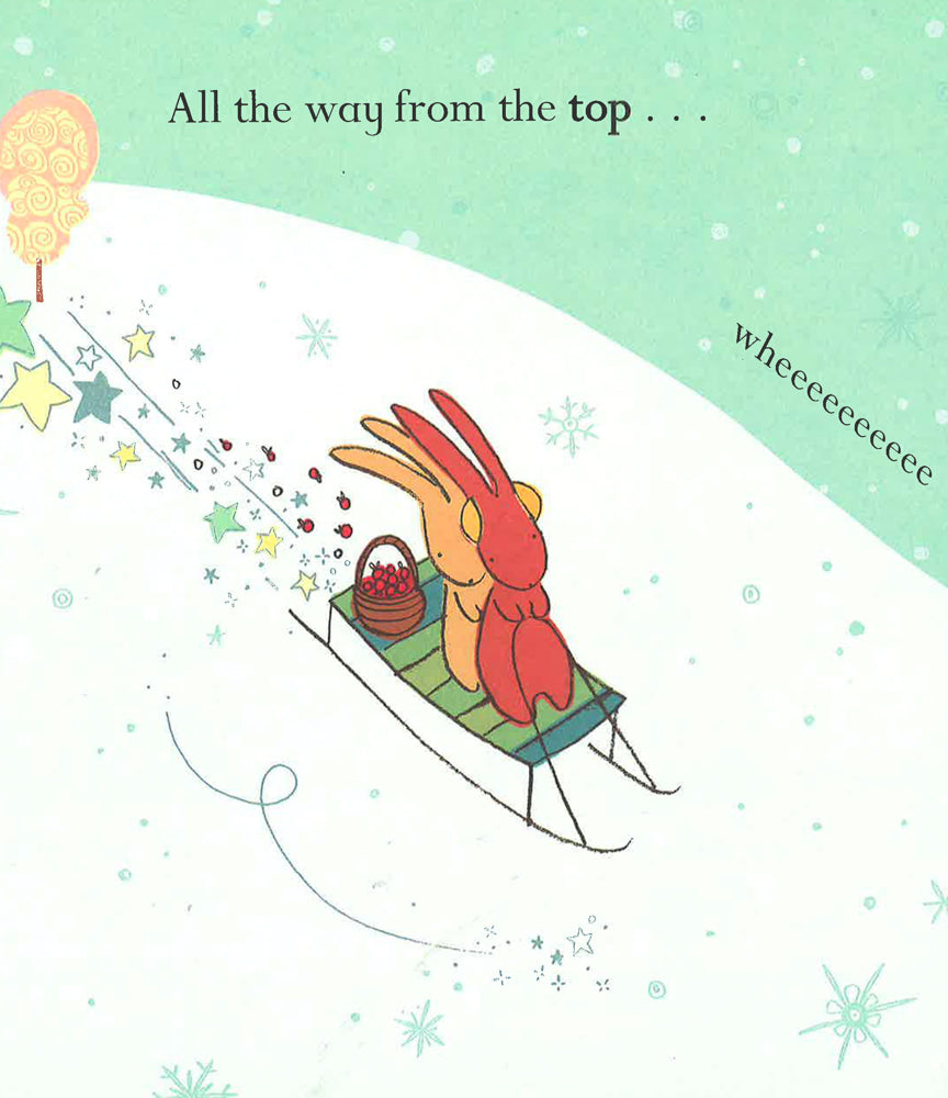 Little Rabbit and her friends are playing in the snow. Rose Rabbit and Grey Rabbit are skating fast and slow. Honey Rabbit and Rust Rabbit are sledging from top to bottom. And Little Rabbit and Brown Rabbit are busy rolling snowballs, one big and one small, ready to make a snowman. But when the sun goes down it's time to say 'goodbye' cold snow, 'hello' hot carrot soup. Kind Little Rabbit has made enough for everyone!