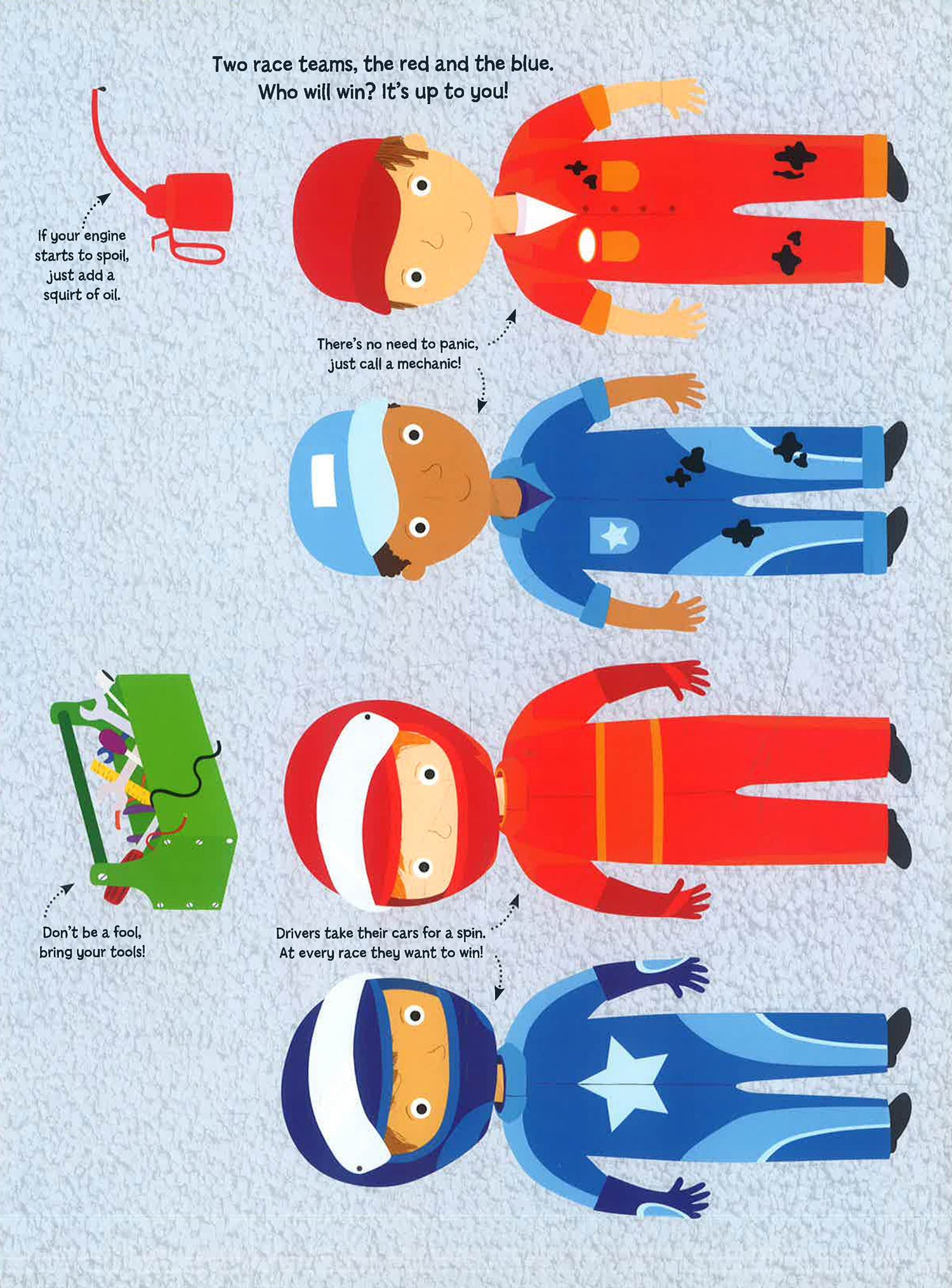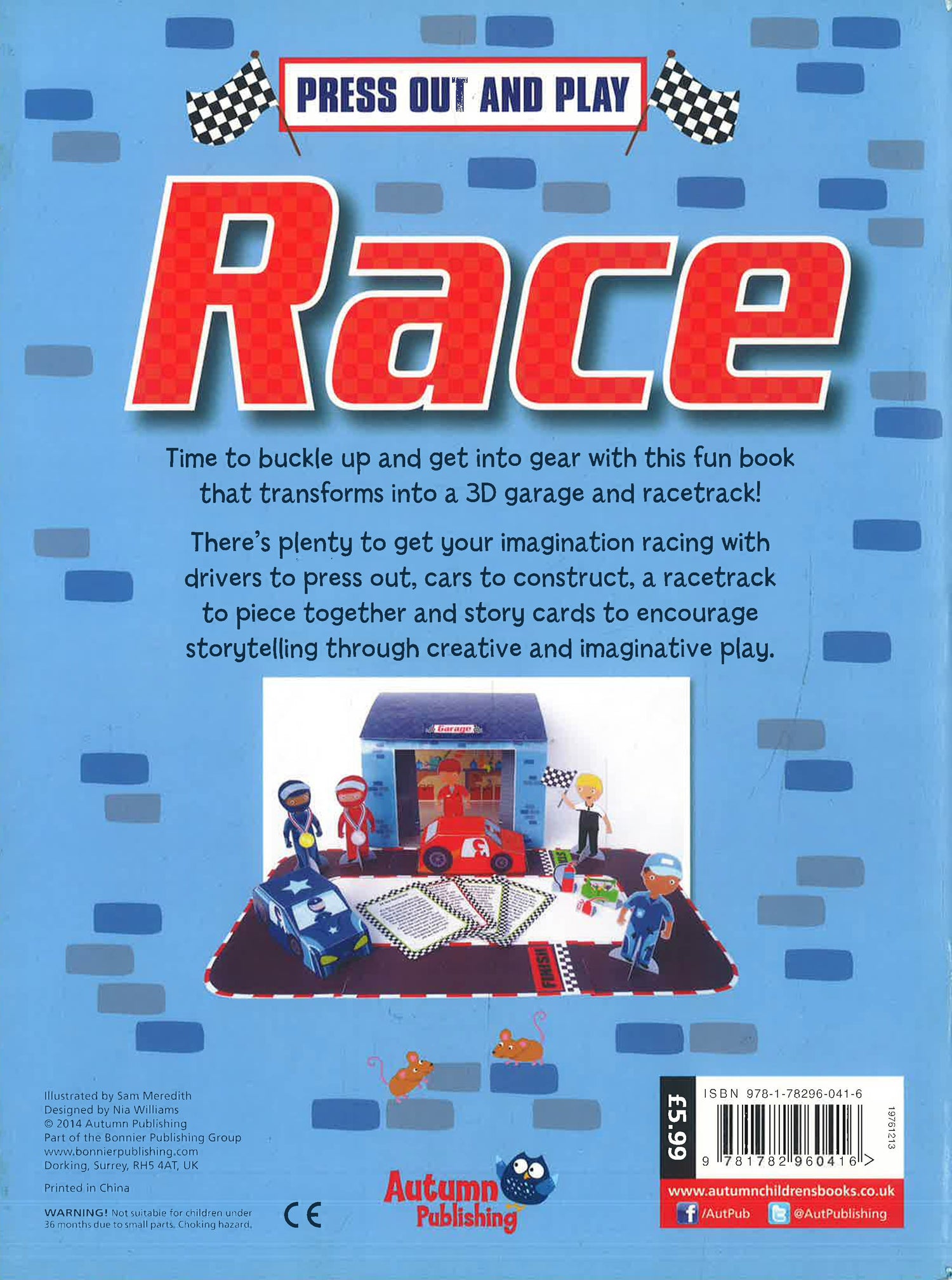 Time to buckle up and get into gear with this fun book. This fantastic book transforms into a 3D garage. There is plenty to get your imagination racing with drivers press out, cars to construct, a racetrack to piece together and story cards to encourage storytelling through creative and imaginative play. This book makes the perfect little gift for all young racers