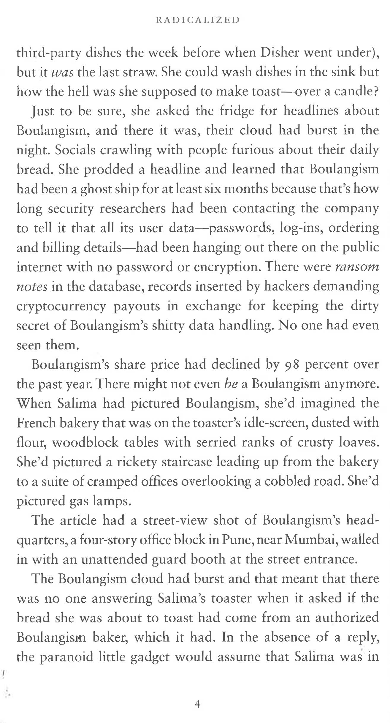 Here are four urgent stories from author and activist Cory Doctorow, four social, technological and economic visions of the world today and its near - all too near - future.