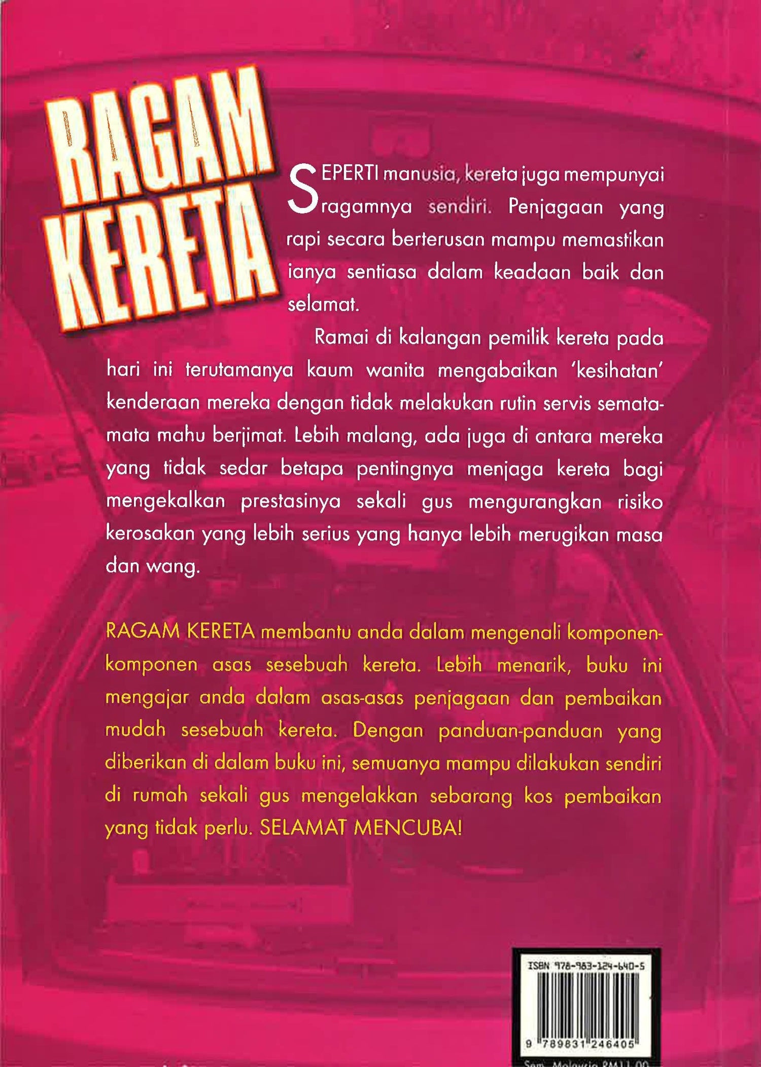 Terdapat pelbagai permasalahan yang biasa berlaku dan perlu diambil tahu oleh pengguna sesebuah kereta. Oleh itu, di dalam buku ‘ Ragam Kereta’ ini dinyatakan permasalahan yang sering berlaku untuk pengetahuan pembaca sebagai salah satu cara menangani dan mengatasi agar kos kerosakan kereta dapat dikurangkan.