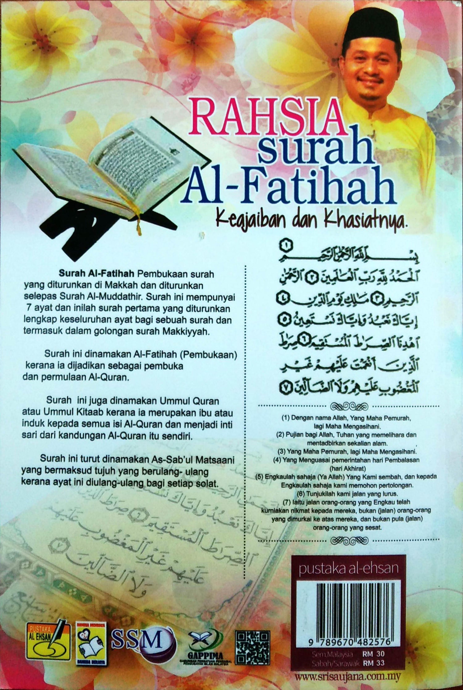 Surah Al-Fatihah Pembukaan surah yang diturunkan di Makkah dan diturunkan selepas Surah Al-Muddathir. Surah ini mempunyai 7 ayat dan inilah surah pertama yang diturunkan lengkap keseluruhan ayat bagi sebuah surah dan termasuk dalam golongan surah Makkiyyah.