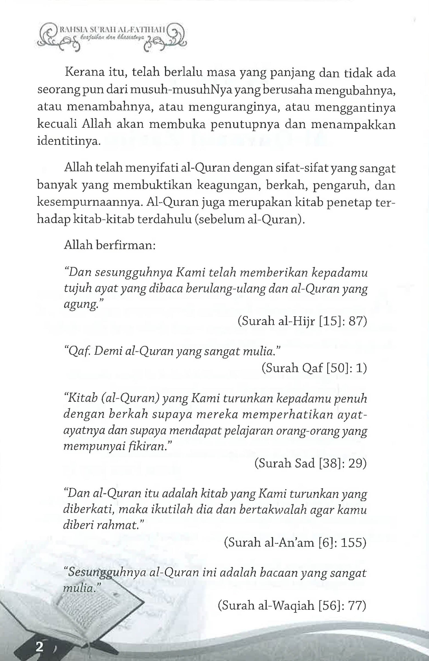 Surah ini juga dinamakan Ummul Quran atau Ummul Kitaab kerana ia merupakan ibu atau induk kepada semua isi Al-Quran dan menjadi inti sari dari kandungan Al-Quran itu sendiri.