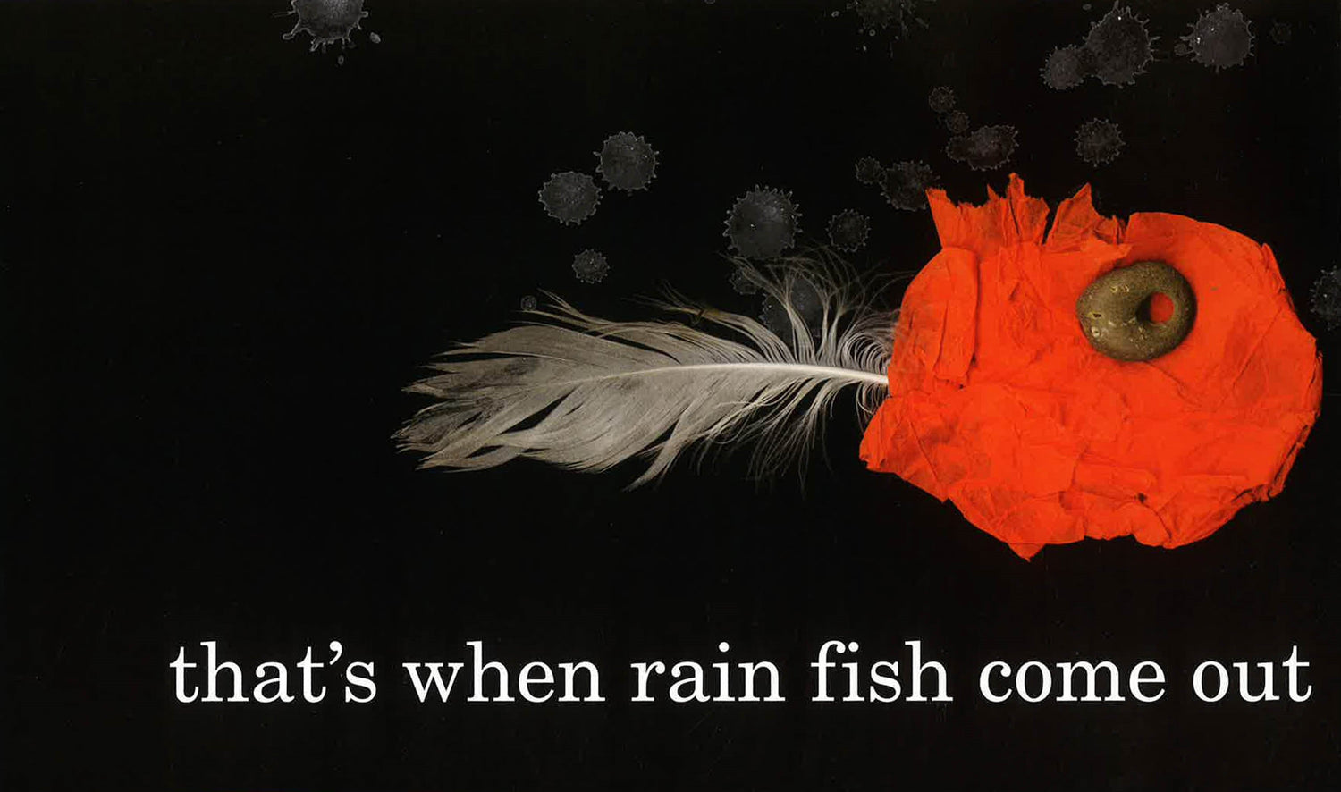 Get to know the "rain fish" that come to life during rainstorms in this gorgeous exploration of nature with vibrant collage artwork from the Caldecott Honor-winning illustrator of Chicka Chicka Boom Boom.When blue sky turns gray and it rains all day, sometimes rain fish come out and play. They swim among discards and debris. Do you see them, too? Or is it just me? Through lyrical text and her incomparable mixed-media collage illustrations, Lois Ehlert introduces readers to "rain fish"-the varied, colorful, and unique little collections of materials that float along on streams of rain water during storms. From a scrap of newspaper with a seashell eye and feather smile to a piece of cardboard with an orange peel eye and a leaf for a fin, Ehlert's rain fish come in all shapes and sizes. Complete with an author's note explaining how Ehlert collected the found materials she used to make the book over the course of a year, Rain Fish is a spirited celebration of imagination, creativity, and observing the world in your own way-and it invites you to discover your own rain fish.