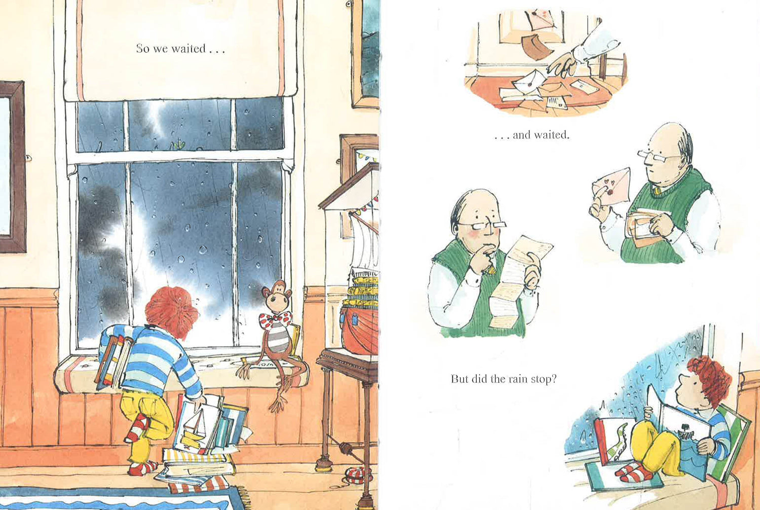 Sam wants to go out but it's pouring with rain, so he and Grandpa decide to stay inside until the rain stops. Sam drinks hot chocolate and reads his books and dreams of adventures while Grandpa gets on with his important paperwork. Grandpa seems to have a VERY important letter to write. Then that very important letter has to be posted, despite the rain and floods. As they finally go outside, Sam and Grandpa have a magical adventure. Rain is the follow-up to the acclaimed Snow; and is the second title in a four-book series based on the weather.