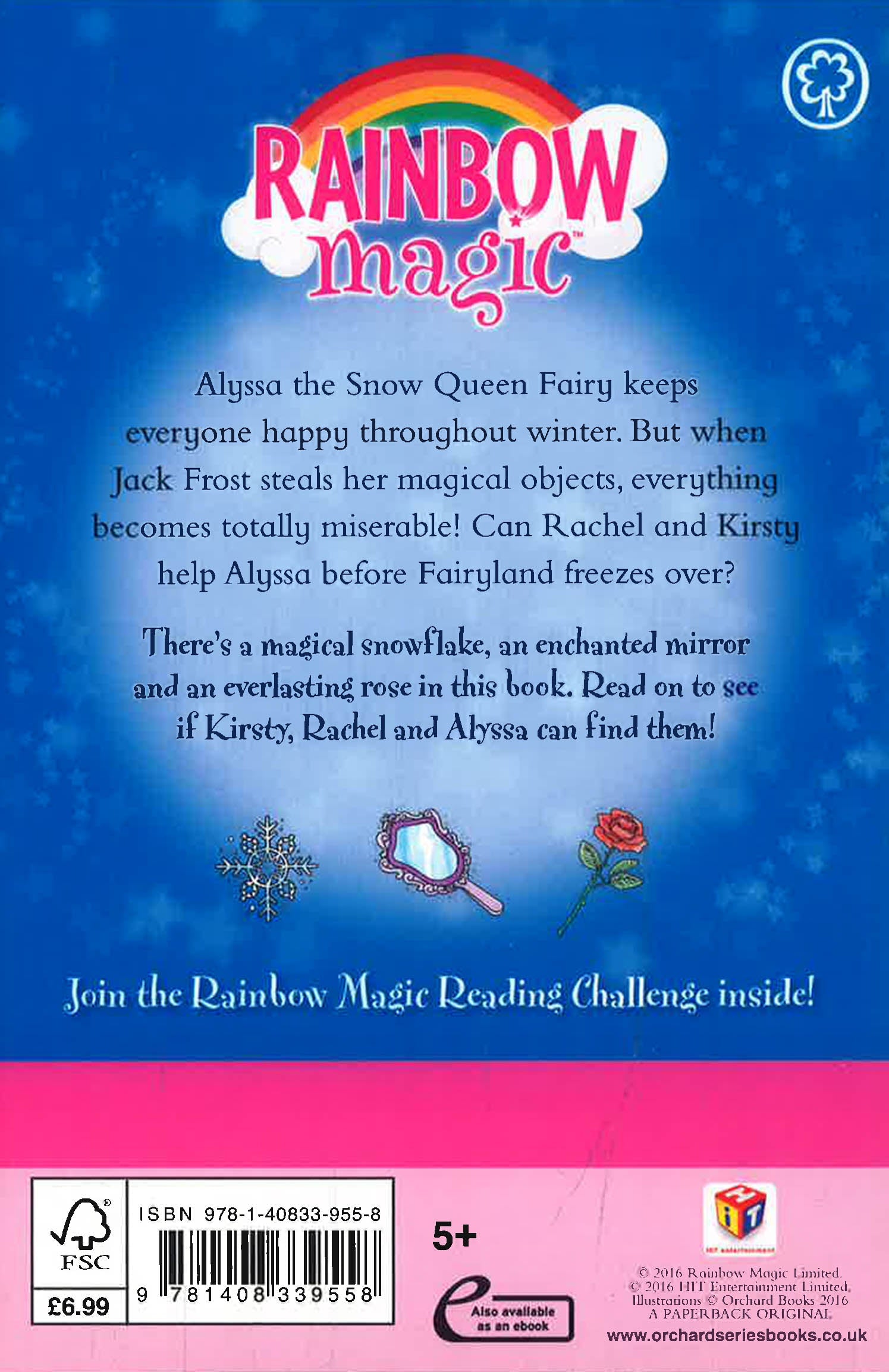 Get ready for an exciting fairy adventure with the no. 1 bestselling series for girls aged.The perfect Christmas gift for children aged 5 and up!Alyssa the Snow Queen Fairy makes sure that everyone is happy throughout winter in both the human and fairy worlds. But when nasty Jack Frost steals her magical objects, everything becomes an icy misery! Can Rachel and Kirsty help get them back before Fairyland freezes over? There's a magical snowflake, an enchanted mirror and an everlasting rose in this book. Read it to see if Kirsty, Rachel and Alyssa can find them!'These stories are magic; they turn children into readers!' ReadingZone.comIf you like Rainbow Magic, check out Daisy Meadows' other series: Magic Animal Friends and Unicorn Magic!