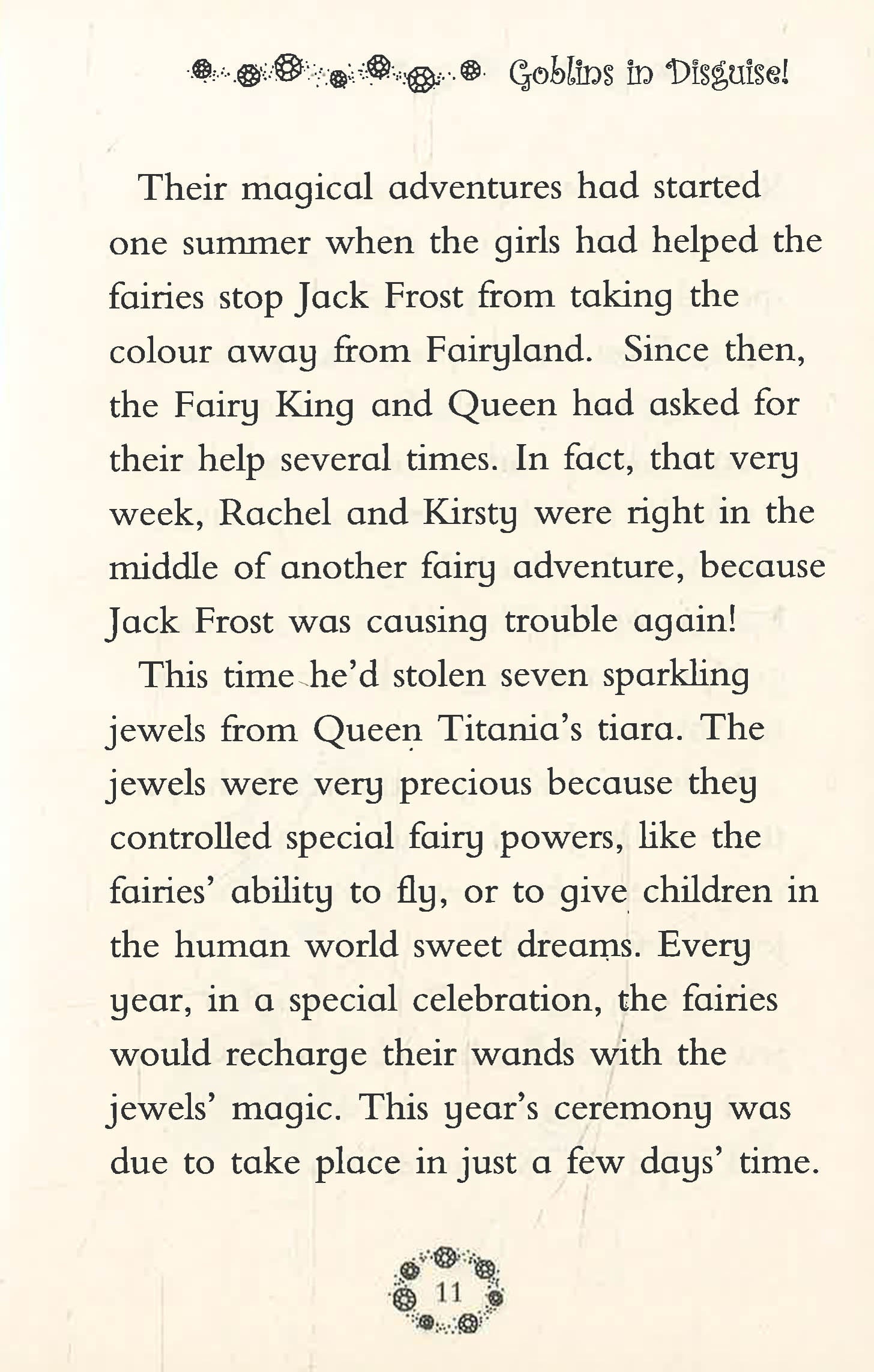 Disaster has struck Fairyland! Jack Frost has stolen all the jewels from Queen Titania's crown. Without them, the fairies' magic dust is losing its power. Rachel and Kirsty have to help the Jewel Fairies to get the jewels back... before it's too late.