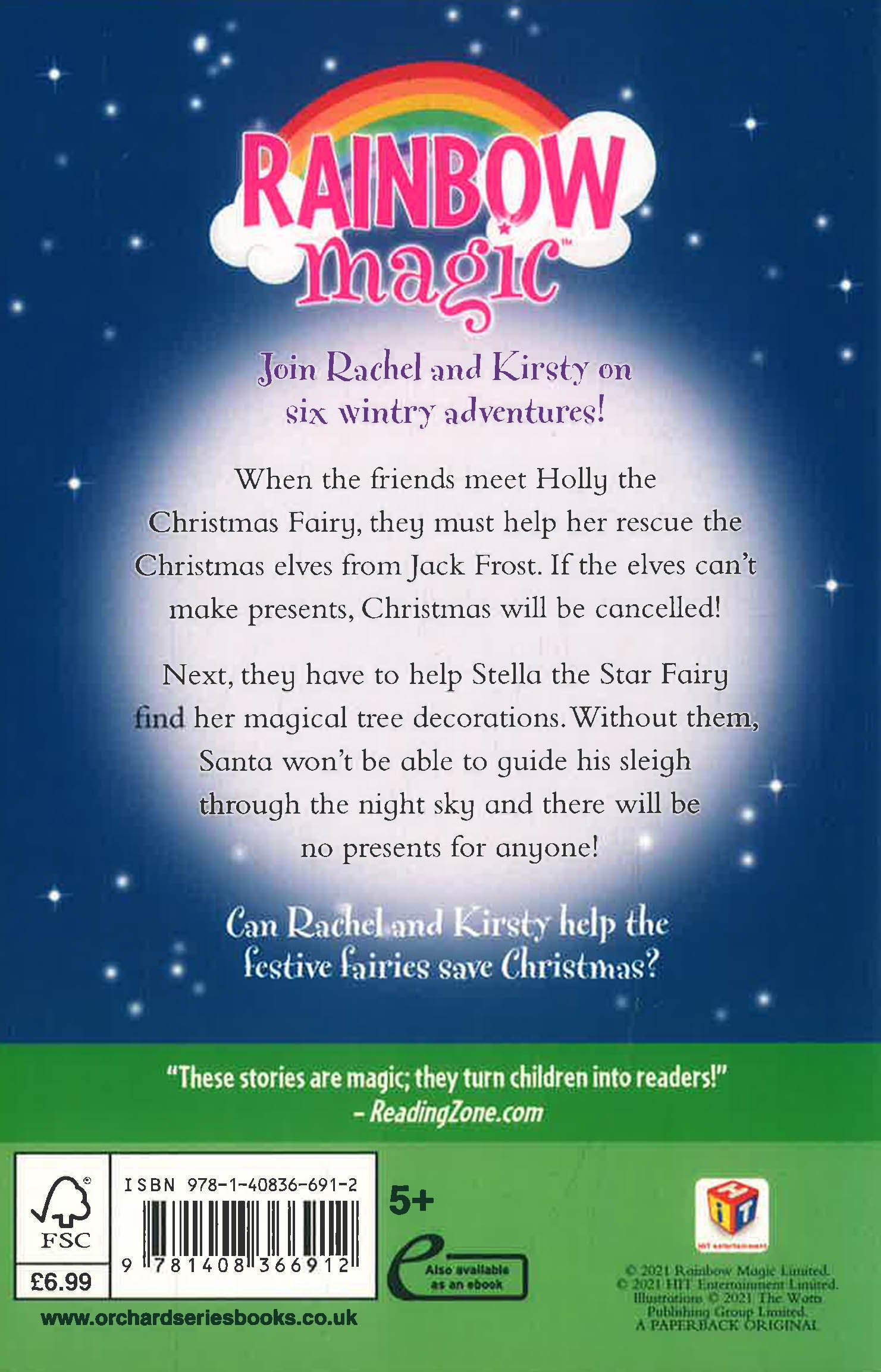 The perfect Christmas present for Rainbow Magic fans! Join Rachel and Kirsty in six sparkly adventures with two of our favourite festive fairies - Holly the Christmas Fairy and Stella the Star Fairy!
