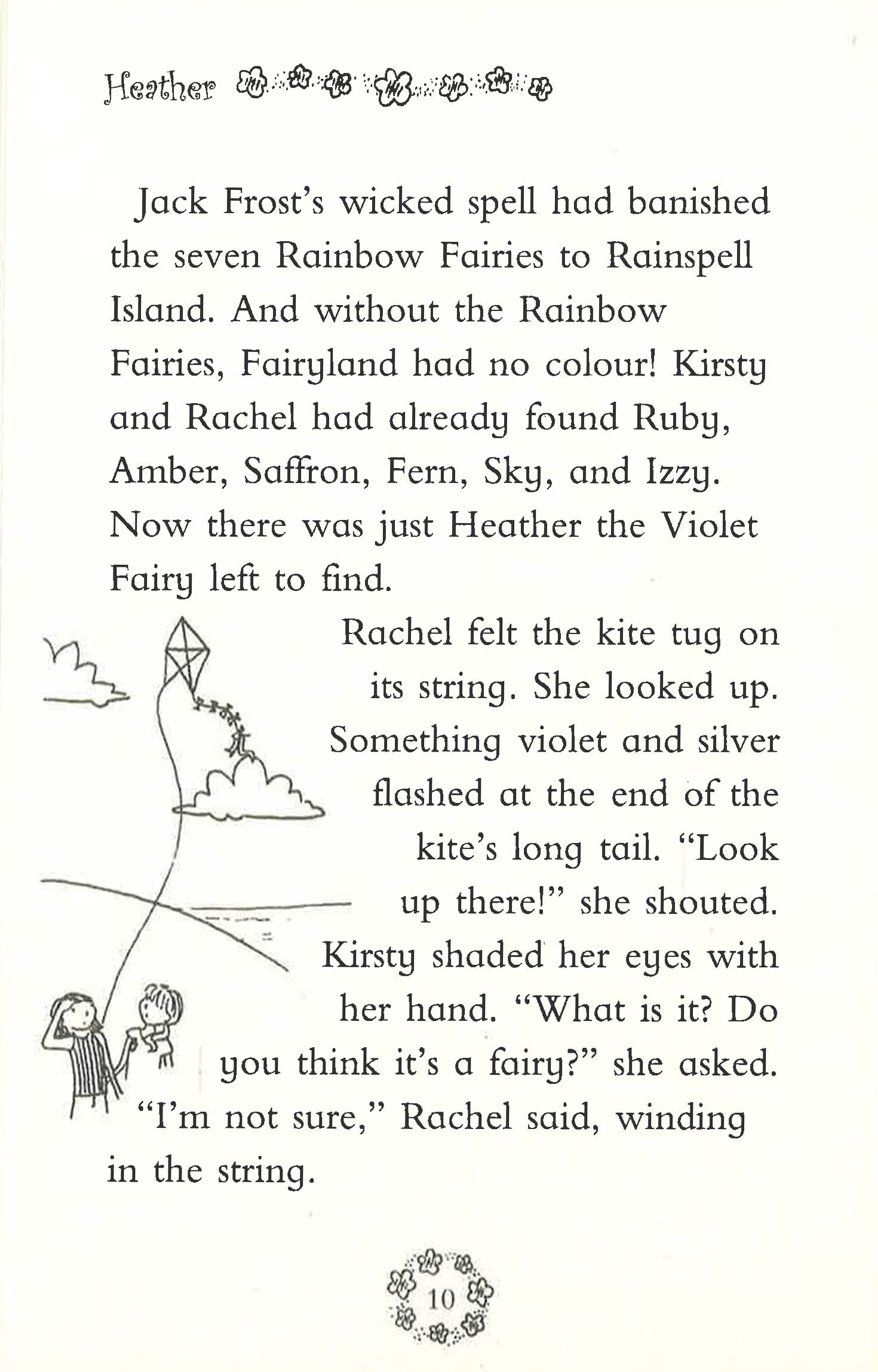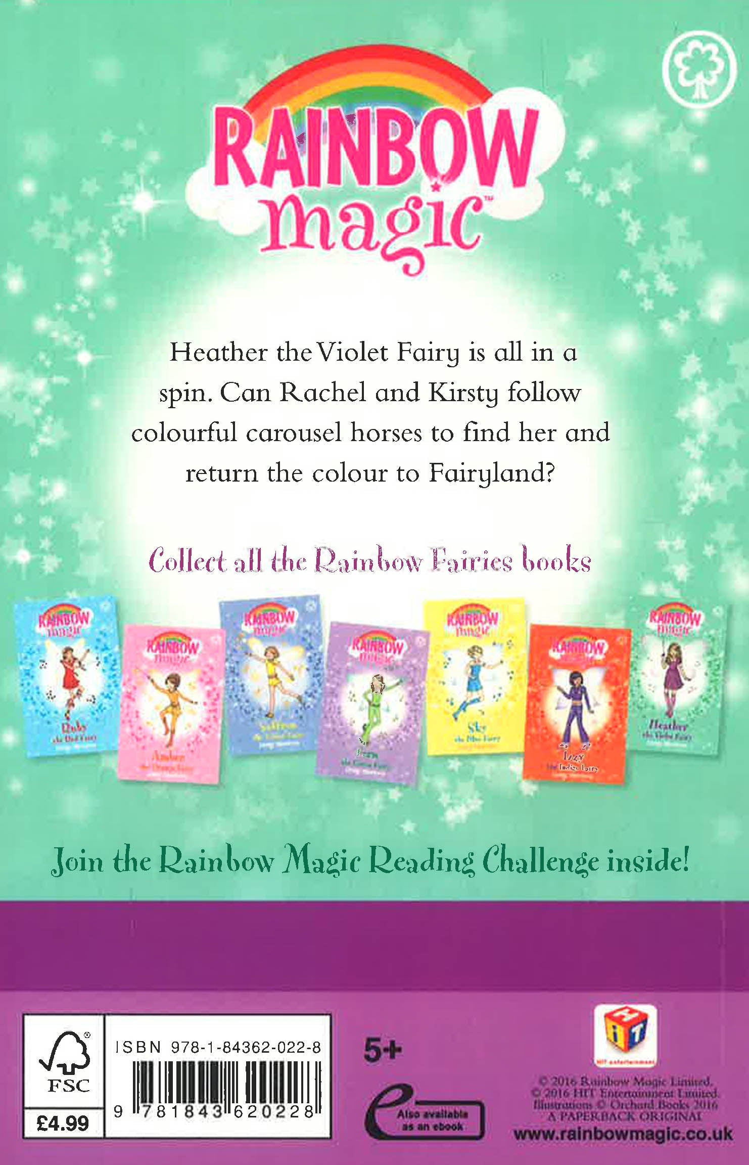 Get ready for an exciting fairy adventure with the no. 1 bestselling series for girls aged 5 and up. When Rachel and Kirsty meet on the ferry to Rainspell Island one summer holiday, they have no idea that such magical adventures with the fairies await them! In the last exciting book in the series, the girls must find Heather the Violet Fairy and then go with the fairies to Fairyland to make sure that all the colours have returned to the magical kingdom!'These stories are magic; they turn children into readers!' ReadingZone.comRead all seven fairy adventures in the Rainbow Fairies set! Ruby the Red Fairy; Amber the Orange Fairy; Saffron the Yellow Fairy; Fern the Green Fairy; Sky the Blue Fairy; Izzy the Indigo Fairy and Heather the Violet FairyIf you like Rainbow Magic, check out Daisy Meadows' other series: Magic Animal Friends and Unicorn Magic!
