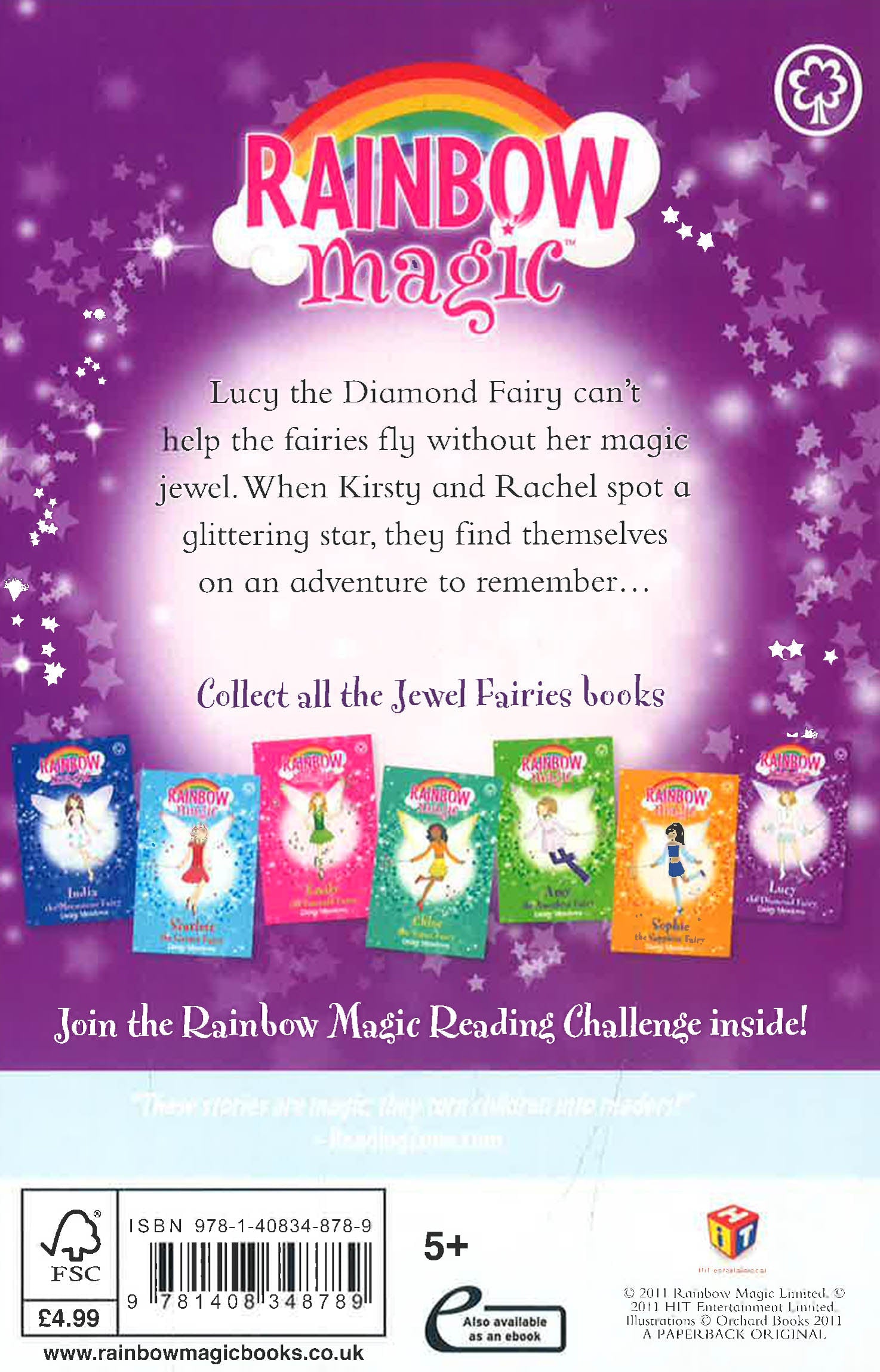 Read all seven fairy adventures in the Jewel Fairies set! India the Moonstone Fairy; Scarlett the Garnet Fairy; Emily the Emerald Fairy; Chloe the Topaz Fairy; Amy the Amethyst Fairy; Sophie the Sapphire Fairy; Lucy the Diamond Fairy.