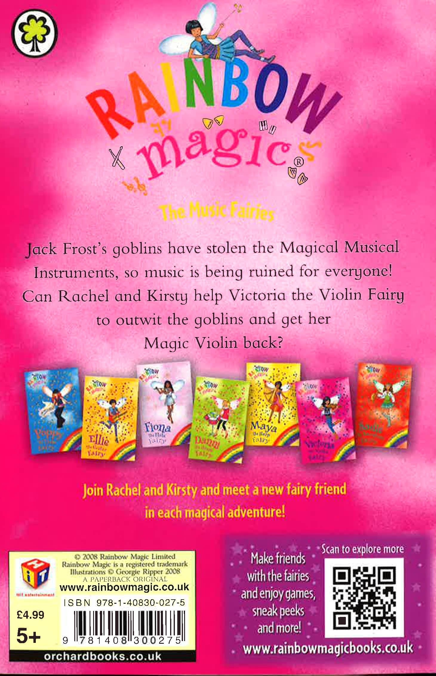 The Music Fairies desperately need Rachel's and Kirsty's help! Jack Frost and his naughty goblins have stolen the fairies' Magical Musical Instruments, which means that music is being ruined for everyone! Jack Frost plans to use the instruments to help him win a national talent competition in the human world, and with the help of the enchanted instruments, he's bound to win. If this happens, humans will find out about Fairyland and then all the fairies will be in danger!