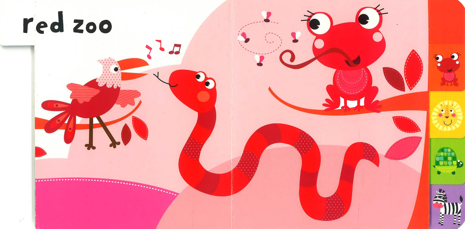 In this first concept book, little ones can turn the tabbed pages to learn different colors in their world! The spreads feature blue hippos, red snakes, yellow lions, green alligators, and more!