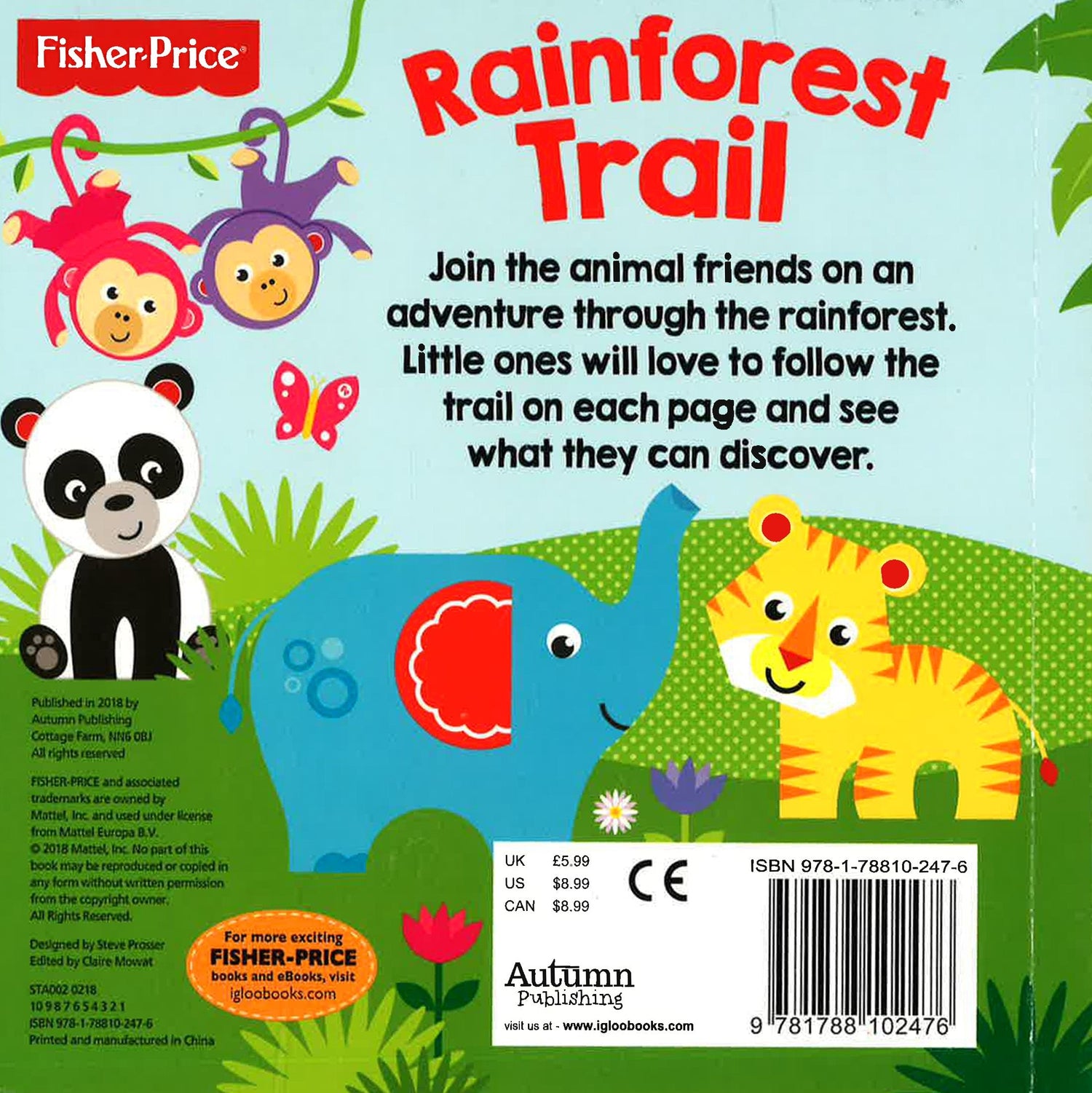Join the animal friends on an adventure through the rainforest. Little ones will love to follow the trail on each page and see what they can discover.