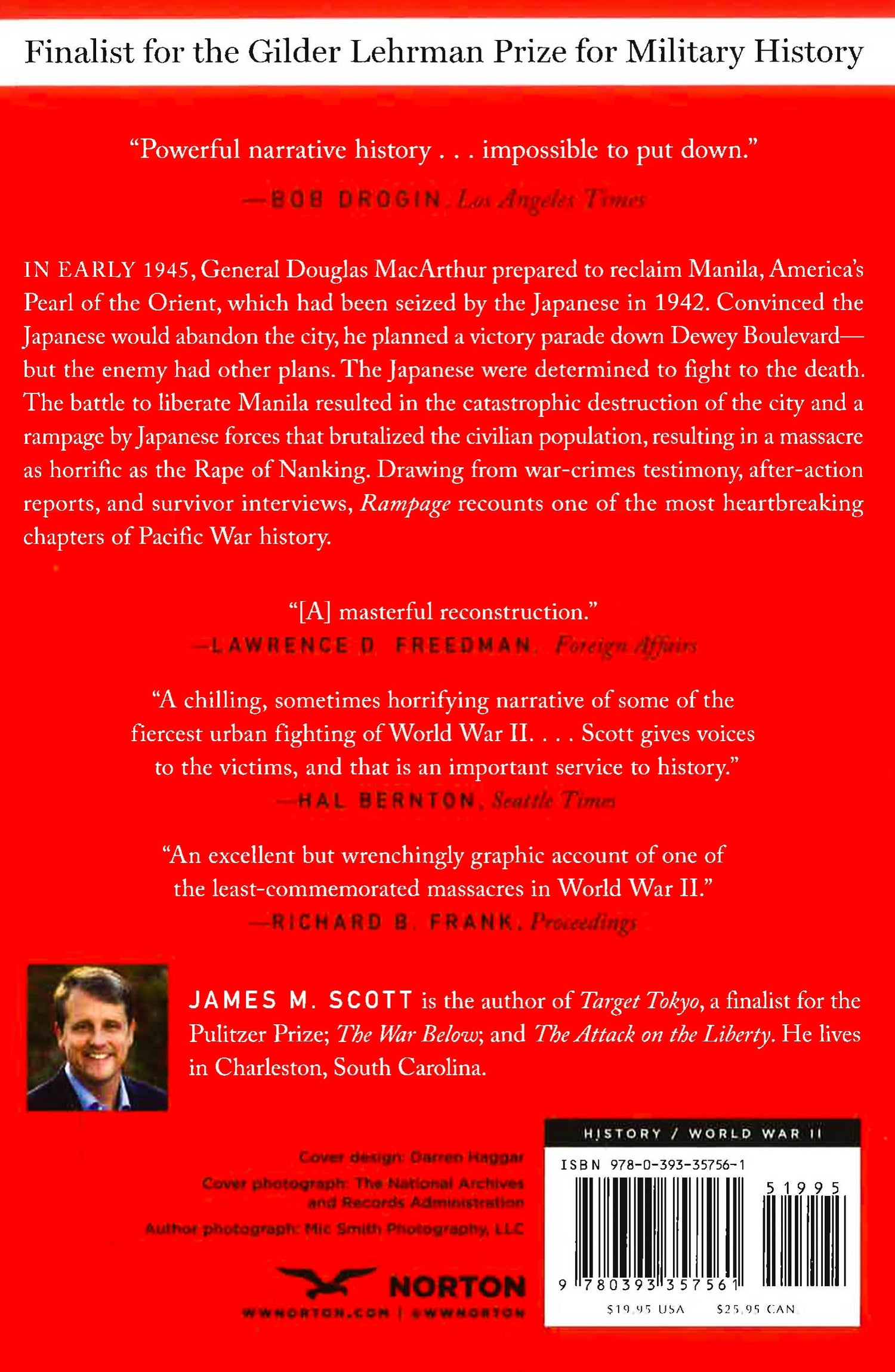 By early 1945, the war against Japan was at its height and General Douglas MacArthur began to fulfil his vow of liberating the Philippines. He was already planning his own victory parade down Dewey Boulevard in Manila, a city he loved dearly. But the Japanese had other ideas. While their command had agreed to abandon Manila after the fall of Leyte, a rogue Japanese admiral instructed his troops to fight to the death. The result was the catastrophic destruction of the city, and a rampage that terrorised the civilian population. An estimated 100,000 civilians lost their lives in a massacre as heinous as the "Rape of Nanking". Based on extensive research, war-crimes testimony, after-action reports and survivor interviews, Rampage recounts one of the most heart-breaking chapters of Pacific war history.