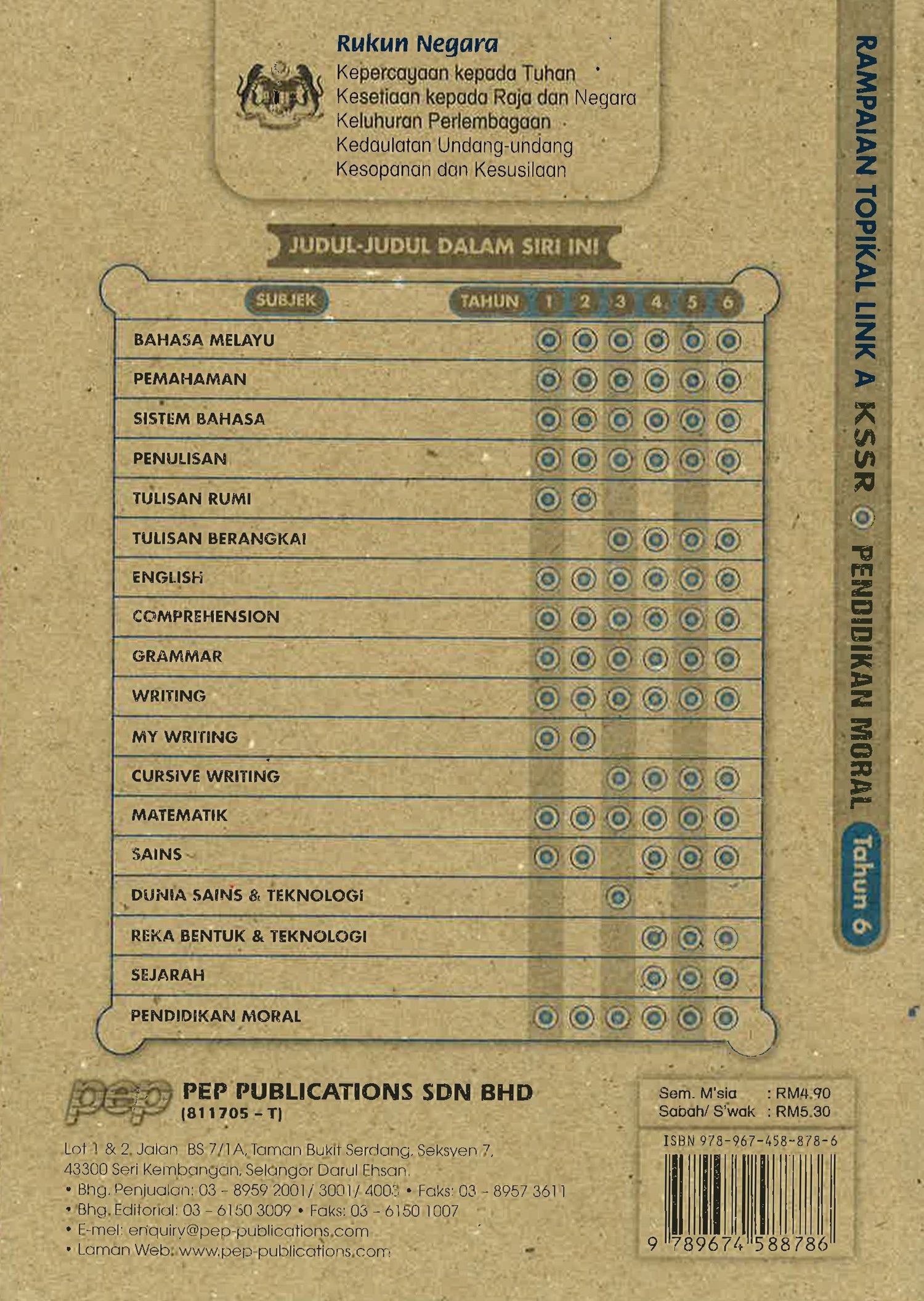 Buku latihan ini diterbitkan selaras dengan tema dan topik dalam Buku Teks dan KSSR Semakan terkini. Semua latihan yang disediakan adalah merangkumi semua tahap penguasaan. Setiap praktis disusun mengikut topik-topik dalam buku teks bagi membantu murid menguasai kandungan mata pelajaran dan seterusnya mencapai kecemerlangan.