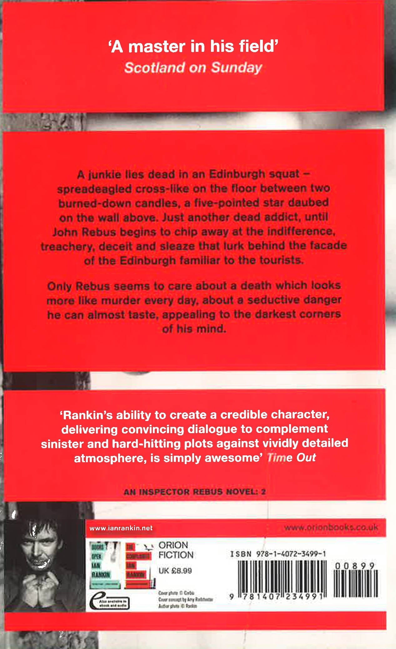 A junkie lies dead in an Edinburgh squat, spreadeagled, cross-like on the floor, between two burned-down candles, a five-pointed star daubed on the wall above. Just another dead addict - until John Rebus begins to chip away at the indifference, treachery, deceit and sleaze that lurks behind the facade of the Edinburgh familiar to tourists.