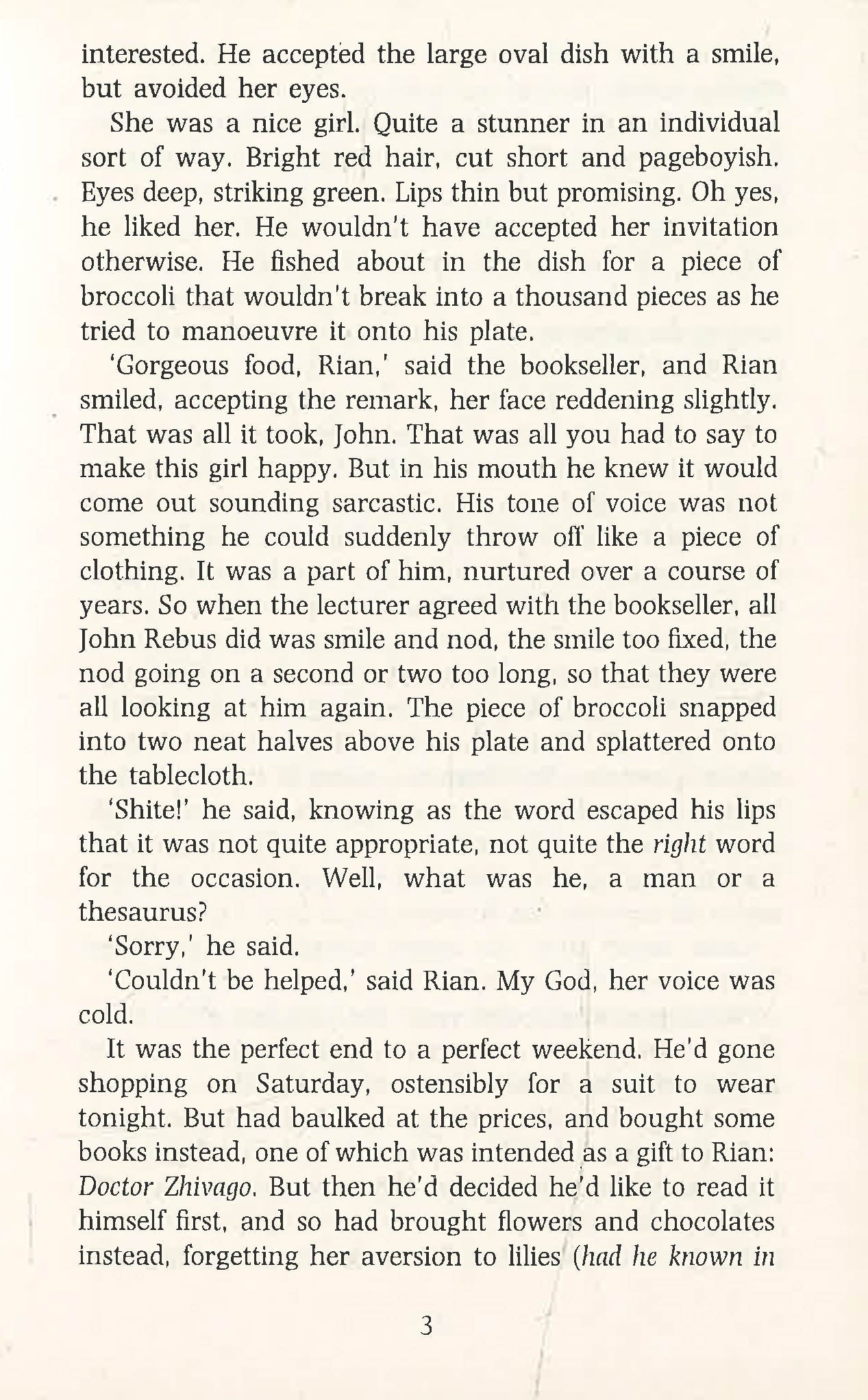 Only Rebus seems to care about a death which looks more like a murder every day, about a seductive danger he can almost taste, appealing to the darkest corners of his mind.