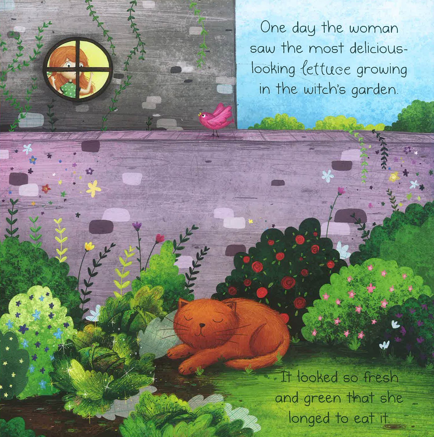 The timeless tale of Rapunzel has been beautifully captured in Kim Barnes' gorgeous illustration style. Every page showcases full-bled artwork that is packed with charm and detail to enthrall children. The story has been simply retold to appeal to young readers and listeners alike.