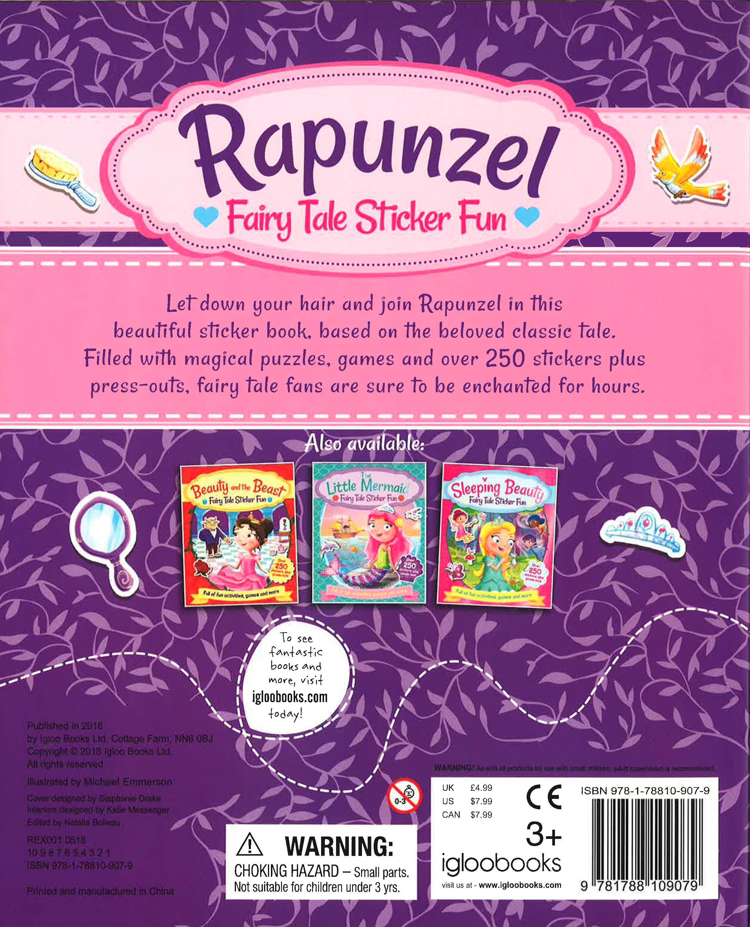 Let down your hair and join Rapunzel in this beautiful sticker book, based on the beloved classic tale. Filled with magical puzzles, games and over 250 stickers plus press-out, fairy tale fans are sure to be enchanted for hours.